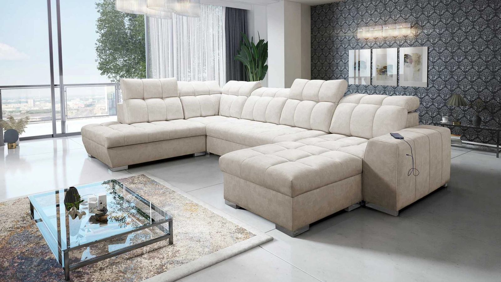 Narożnik Luigi VI w kolorze beżowym z regulowanymi zagłówkami to zachwycający mebel z gwarancją najwyższego komfortu i funkcjonalności.