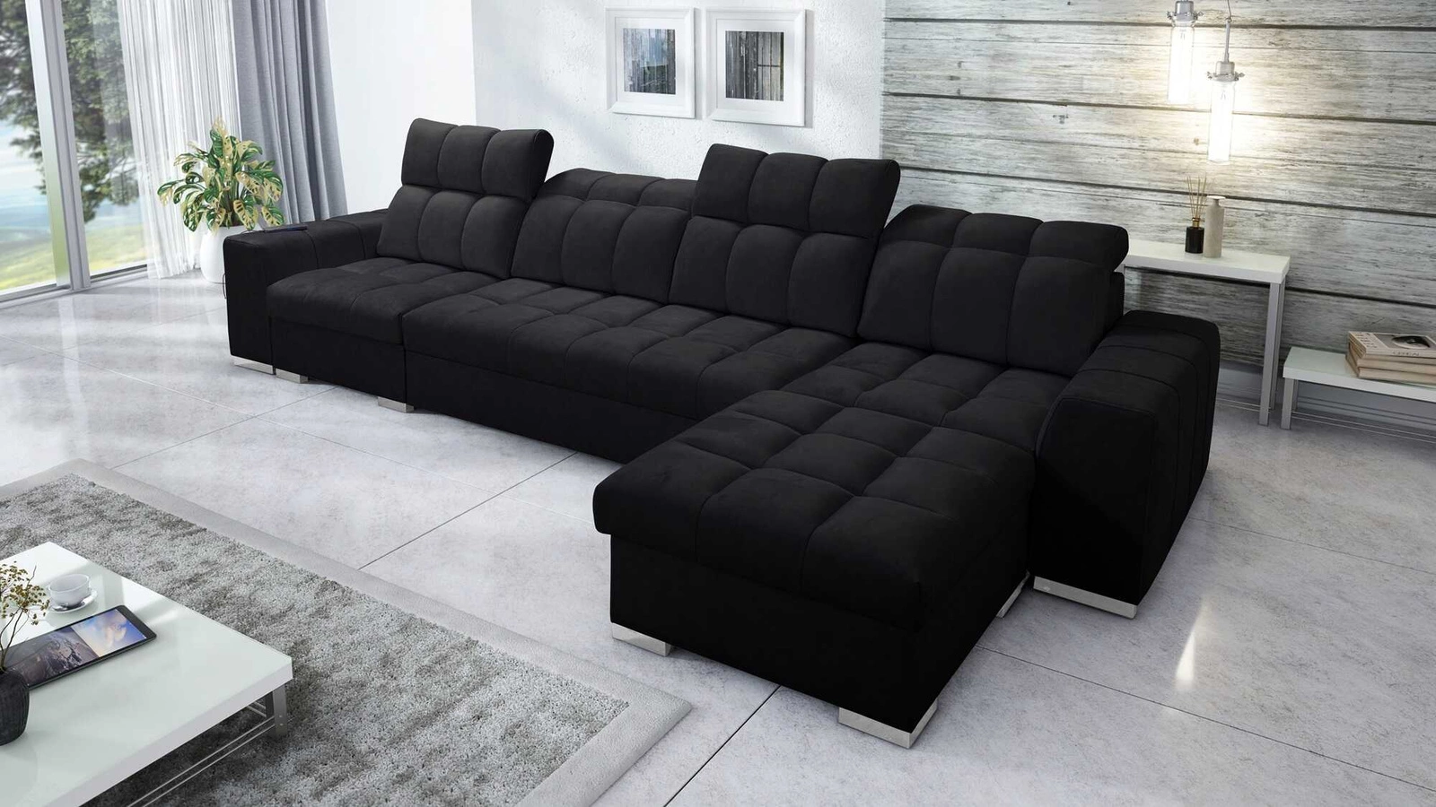Narożnik z funkcją spania Luigi XII czarny prawostronny stylowy narożnik do salonu w minimalistycznym i eleganckim wykończeniu