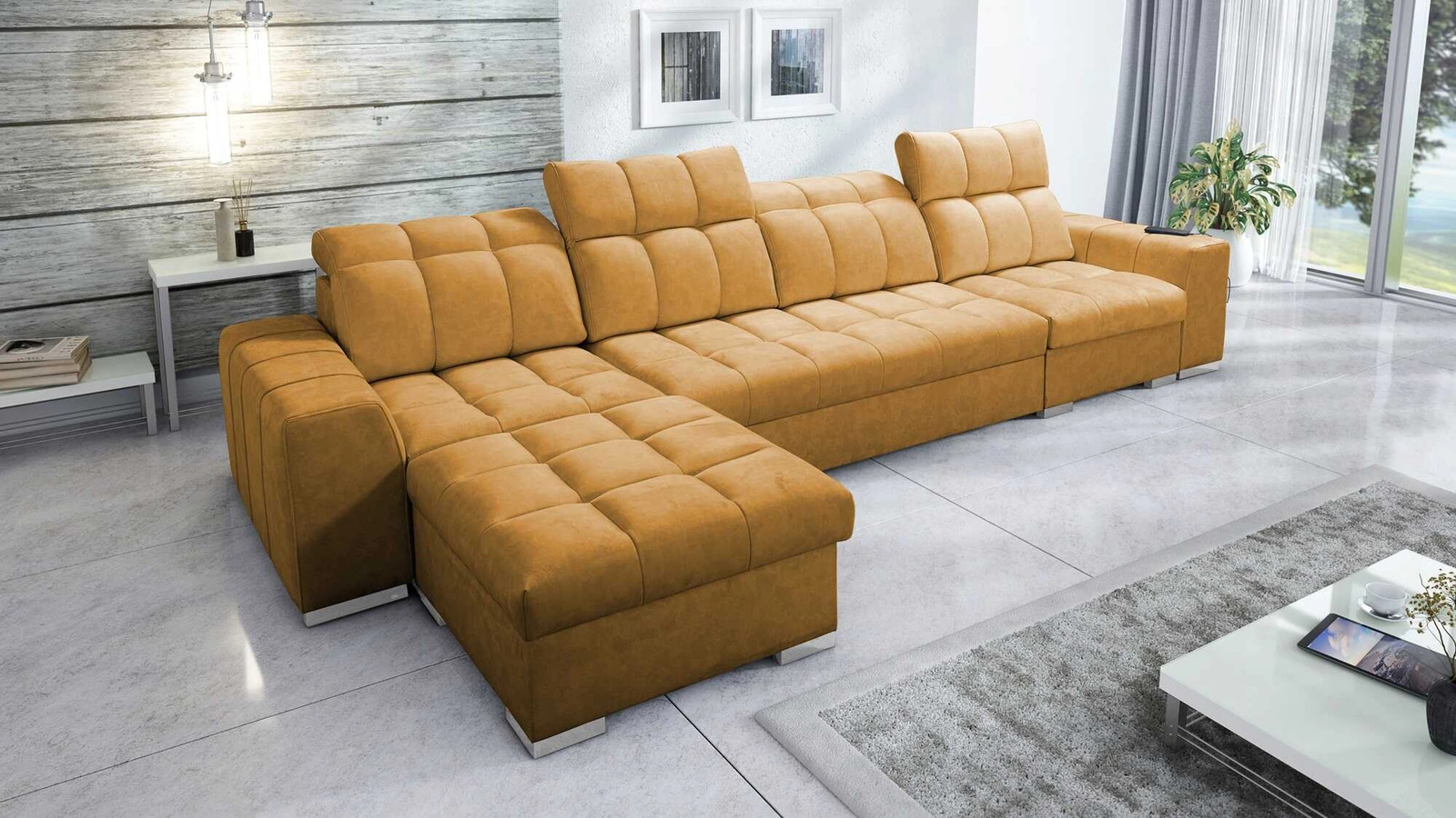 Narożnik Luigi XII w kolorze miodowym z regulowanymi zagłówkami to stylowy mebel z gwarancją najwyższego komfortu i funkcjonalności.