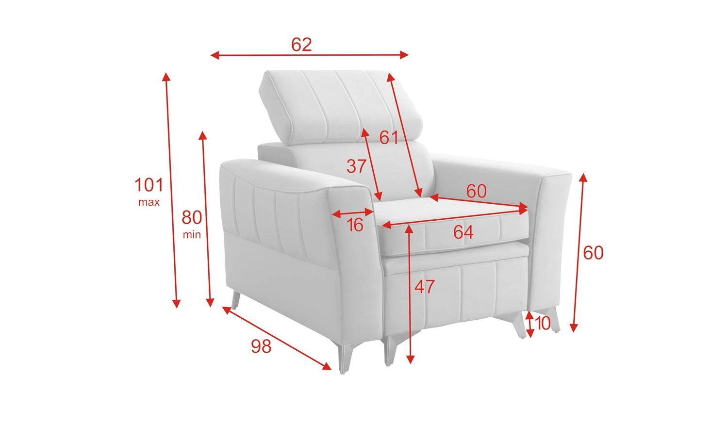 Pianka poliuretanowa T30 to materiał, z którego wykonane zostało siedzisko fotela. Oparcie stałe z regulowanym zagłówkiem pozwoli na łatwe dostosowanie kąta nachylenia zagłówków do swoich preferencji oraz daje gwarancję wygodnego wypoczynku po długim dniu, które docenisz Ty, Twoi bliscy a także goście, którzy zasiądą na tym wyjątkowym fotelu. Dodatek tego mebla, który docenią wszyscy użytkownicy to duży pojemnik ułatwiający przechowywanie. Mebel wyposażony został w chromowane, metalowe nogi. Fotele nowoczesne z kolekcji Rava świetnie odnajdą się w każdym wnętrzu w Twoim ulubionym stylu. Tapicerowany tył fotela umożliwia umieszczenie mebla w dowolnej części pomieszczenia.