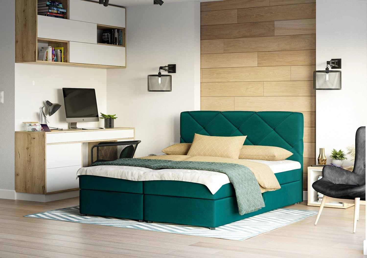Łóżko kontynentalne Luton 140x200 w kolorze turkusowym to idealne rozwiązanie do sypialni urządzonej w stylu nowoczesnym, skandynawskim oraz klasycznym.
