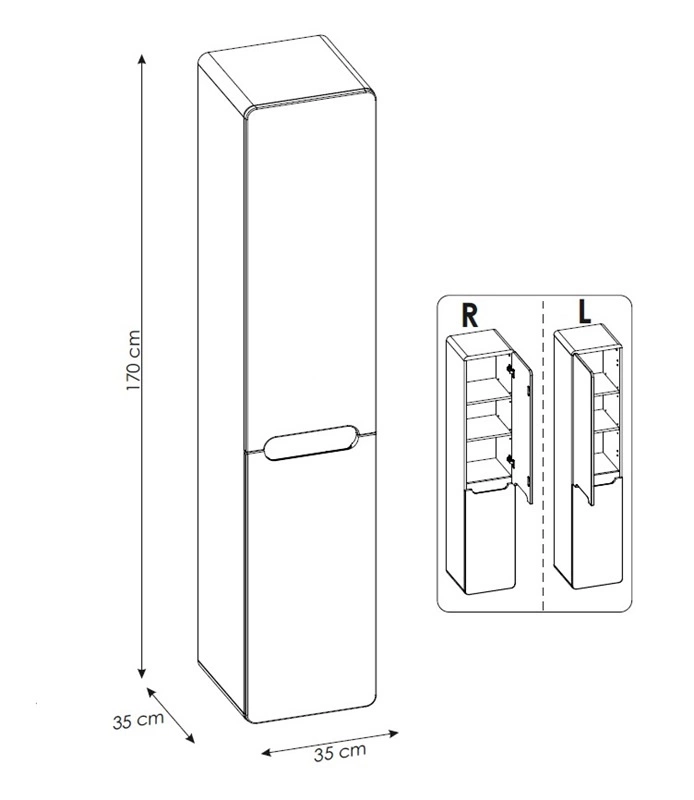 Słupek do łazienki jest wyposażony w 2 drzwi z systemem cichego domykania. Zastosowany system zwiększa komfort i bezpieczeństwo użytkowania mebli. Drzwi są uniwersalne i można je zamontować po prawej lub po lewej stronie. Wszystkie elementy kolekcji Aruba wyróżniają się starannym wykonaniem i dbałością o detale, gwarantując estetyczny wygląd i długotrwałą satysfakcję z użytkowania.