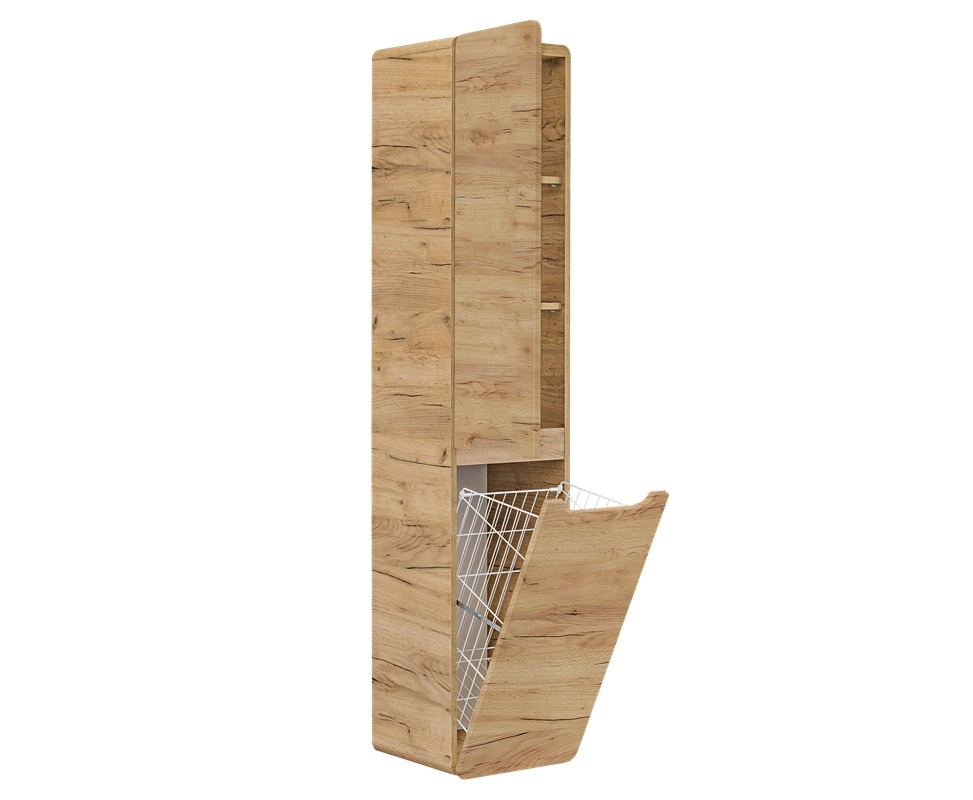 Słupek łazienkowy wiszący Aruba 35 cm dąb craft złoty szafka wyposażona w kosz na pranie odporność na wilgoć i wysoką temperaturę