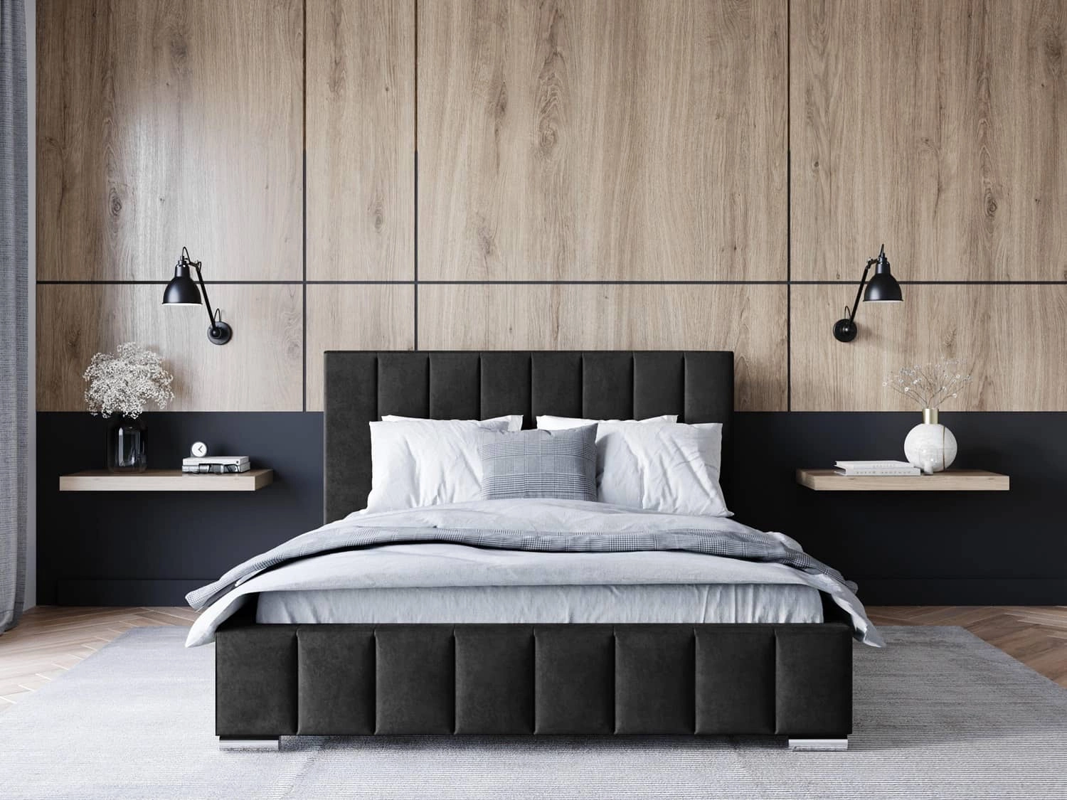 Łóżko tapicerowane Insam 160x200 w kolorze czarnym to idealne rozwiązanie do sypialni urządzonej w stylu nowoczesnym, skandynawskim oraz klasycznym.