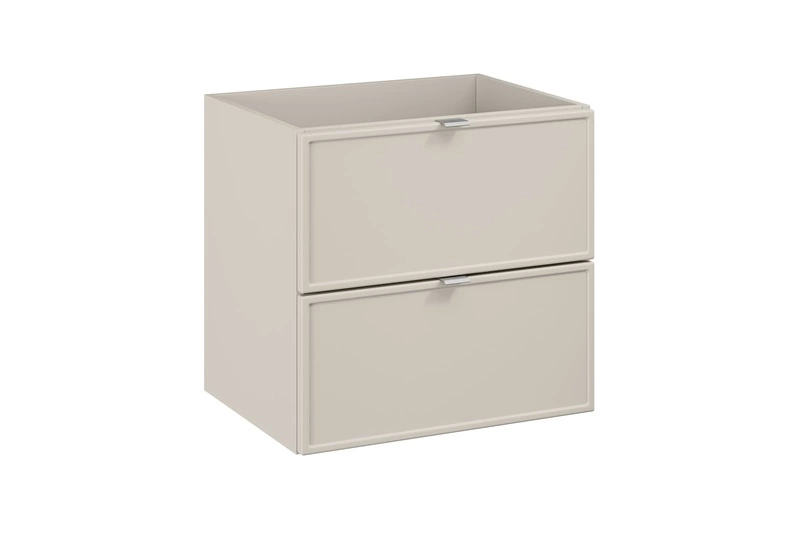 Szafka pod umywalkę Bella 60 cm beżowa klasyczny design szafki z szufladami elegancka frezowana ramka na frontach uchwyt krawędziowy