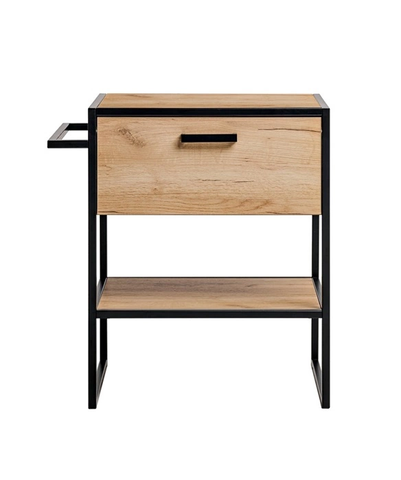 Szafka pod umywalkę z kolekcji Brooklin cechuje się prostą formą oraz niepowtarzalnym stylem nadając przy tym szczególnego charakteru każdej łazience. Industrialny design i ponadczasowe połączenie metalu z drewnem doskonale dopasuje się loftowych, jak i nowoczesnych aranżacji. Elementem przyciągającym wzrok są czarne uchwyty o ciekawym designie, które poza swoją podstawową funkcją, nadają meblom nietuzinowego wyglądu. Mnogość i różnorodność brył z kolekcji Brooklin pozwoli na łatwe skomponowanie indywidualnego zestawu mebli do łazienki.