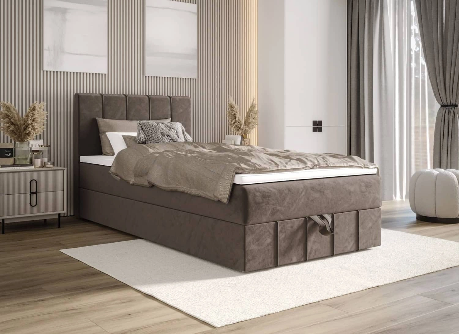 Łóżko kontynentalne Casey 90x200 jasny brąz w nowoczesnym skandynawskim stylu z tapicerowanym zagłówkiem łóżko z pojemnikiem