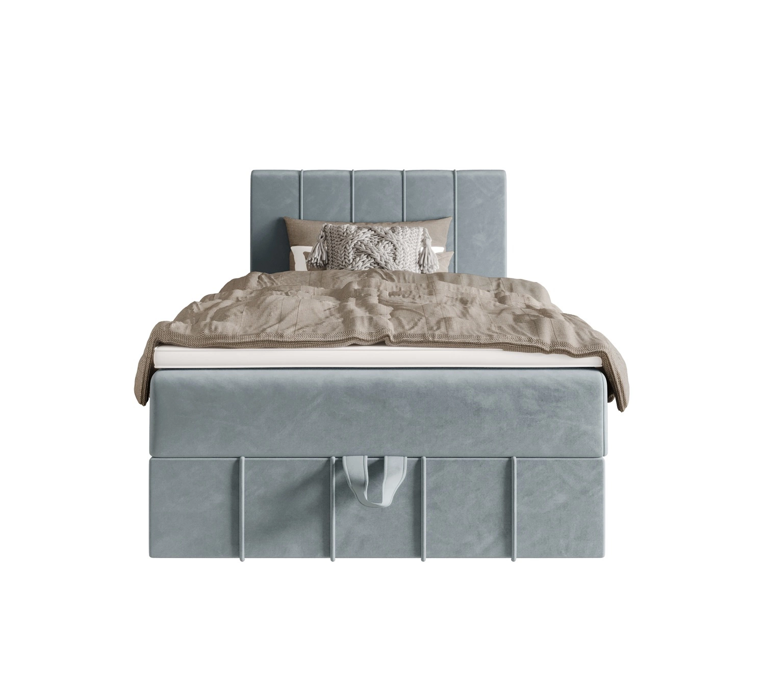 Łóżko wykonane z tkaniny typu velvet Monolith 72 gwarantuje najwyższy komfort i funkcjonalność podczas codziennego wypoczynku w sypialni. Tkanina posiada powłokę hydrofobową, co gwarantuje ograniczone wchłanianie cieczy. Ciekawa struktura tkaniny nadaje wyjątkowego charakteru. Dzięki wszystkim właściwościom użytej tkaniny, łóżko kontynentalne na długo zachowa swój pierwotny wygląd. Konstrukcja łóżka zapewnia dużą stabilność i wygodę użytkowania. Rama łóżka kontynentalnego jest wykonana z drewna oraz płyty meblowej. Pionowe przeszycia na wezgłowiu przyciągają wzrok i nadają łóżku szczególnego charakteru.
