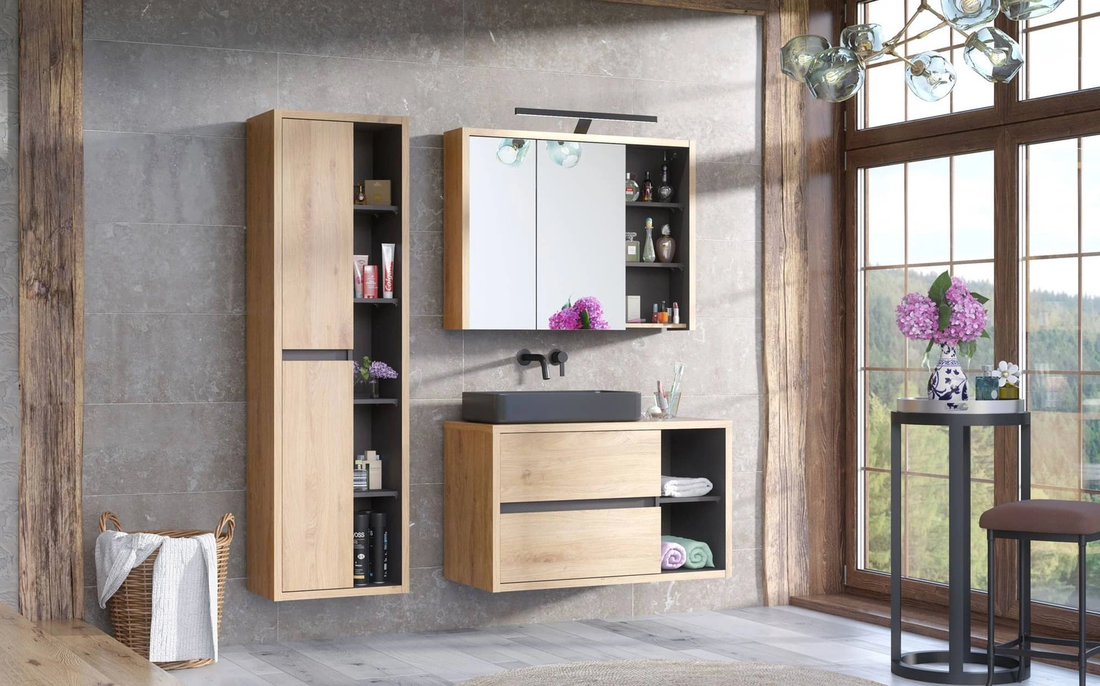 Zestaw mebli łazienkowych Devon w kolorze dąb shetland / grafit to doskonałe dopełnienie każdej łazienki.