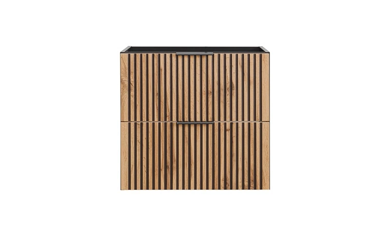 Szafka pod umywalkę Xilo to mebel, który zachwycą barwą i stylem, ale także wysokim komfortem użytkowania oraz funkcjonalnością. Wyjątkowe zestawienie dębu wotan z pionowym ryflowaniem w kolorze czarnym stanowi designerską i niespotykaną ozdobę mebla. Niebanalny charakter mebla uwydatnia gustowny uchwyt krawędziowy w kolorze czarnym. Unikalne połączenie modnego wzoru i nowoczesnej formy sprawia, że kolekcja Xilo idealnie dopasuje się do łazienek o różnych rozmiarach oraz różnorodnych stylach aranżacyjnych.