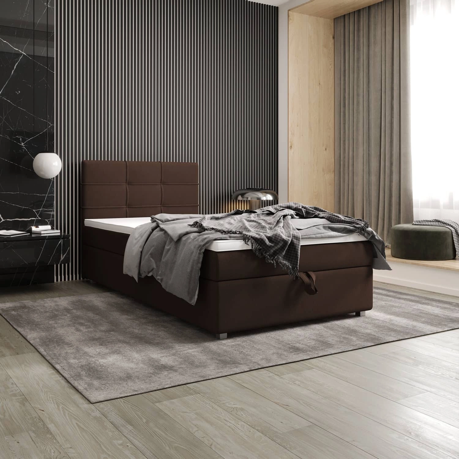 Łóżko kontynentalne Fresno 90x200 w kolorze brązowym to idealny wybór do każdej sypialni lub pokoju młodzieżowego.