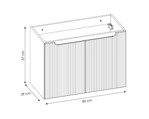 Korpus szafki jest wykonany z wysokiej jakości płyty laminowanej o grubości 16 mm. Fronty szafki do łazienki z ozdobnym ryflowaniem są wykonane z wysokiej jakości płyty MDF. Zaletą tego rodzaju materiałów jest wysoka odporność na wpływ czynników, często występujących w łazience, takich jak para wodna, wysoka temperatura czy rozlane ciecze. Konstrukcja szafki umożliwia użycie umywalki wpuszczanej lub zabudowanie jej dedykowanym blatem do umywalki nablatowej.