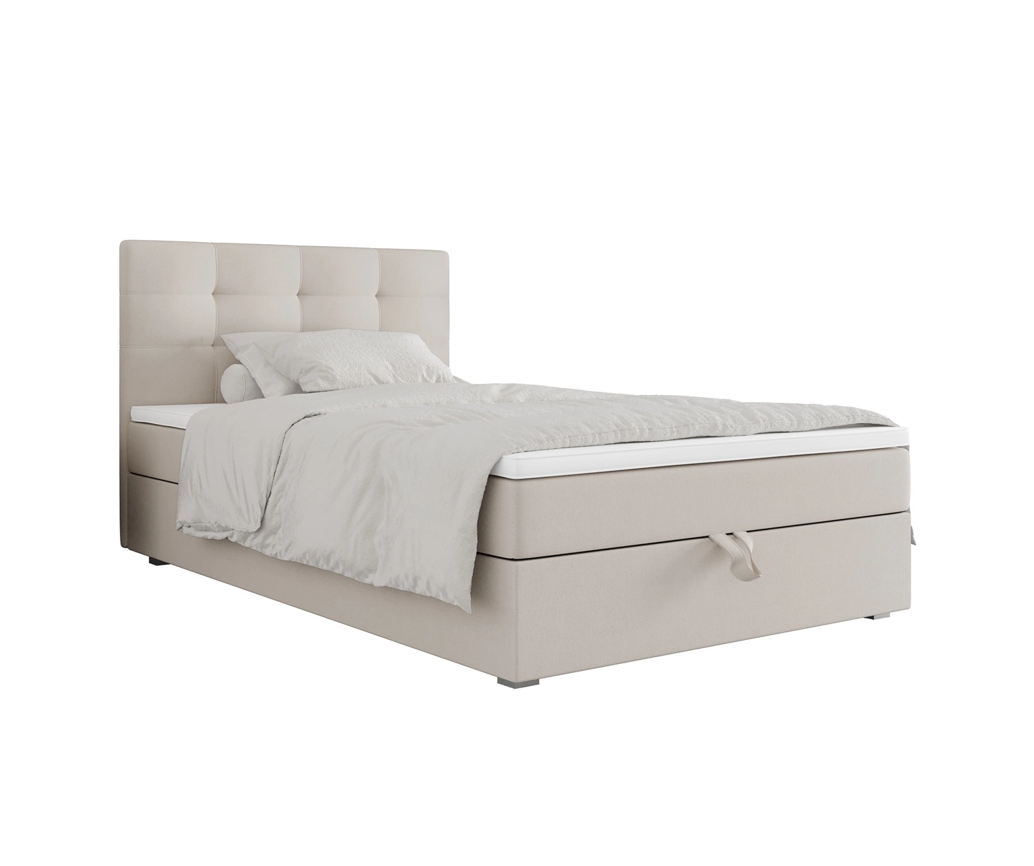 Łóżko kontynentalne Flint 100x200 w kolorze beżowym to idealny wybór do każdej sypialni lub pokoju młodzieżowego.