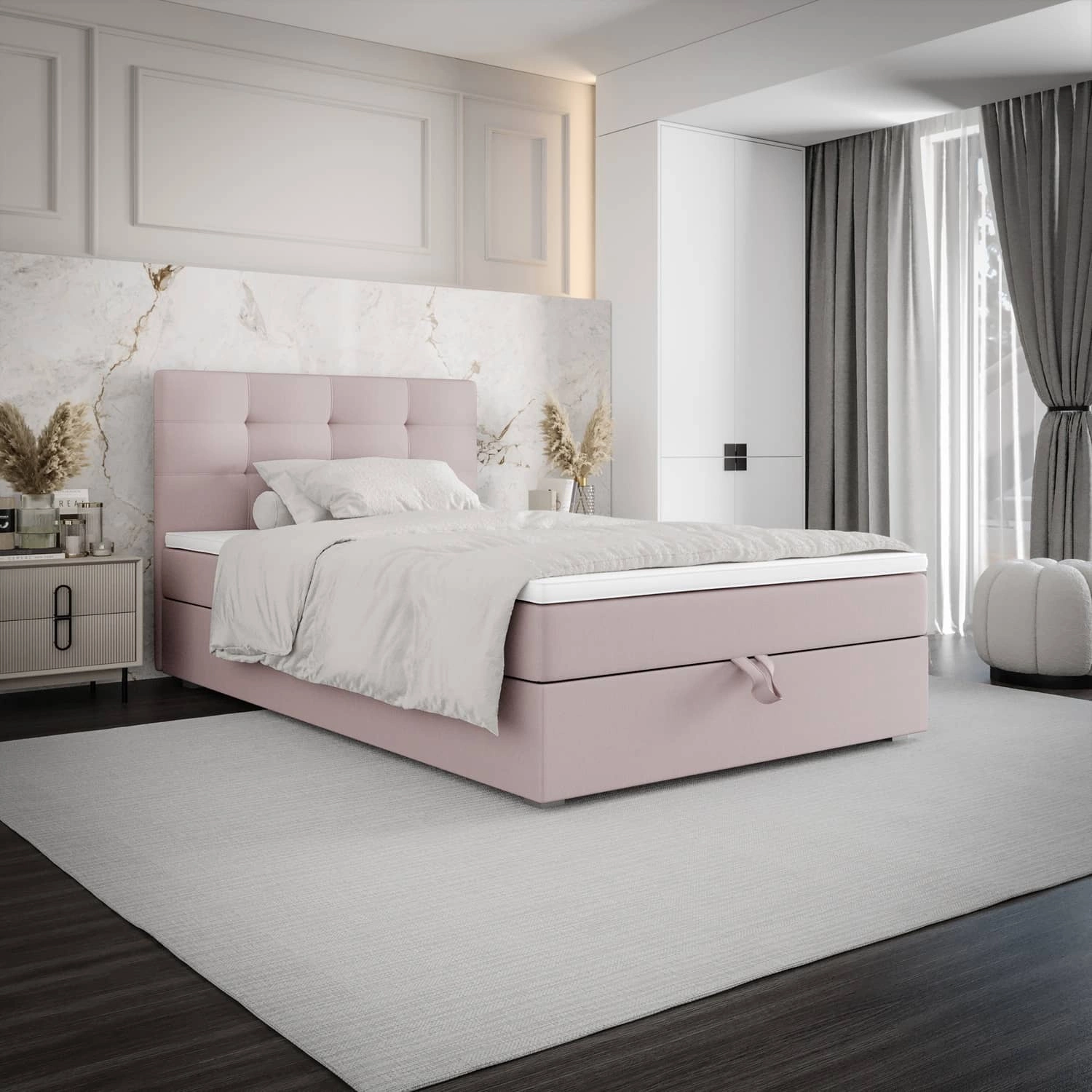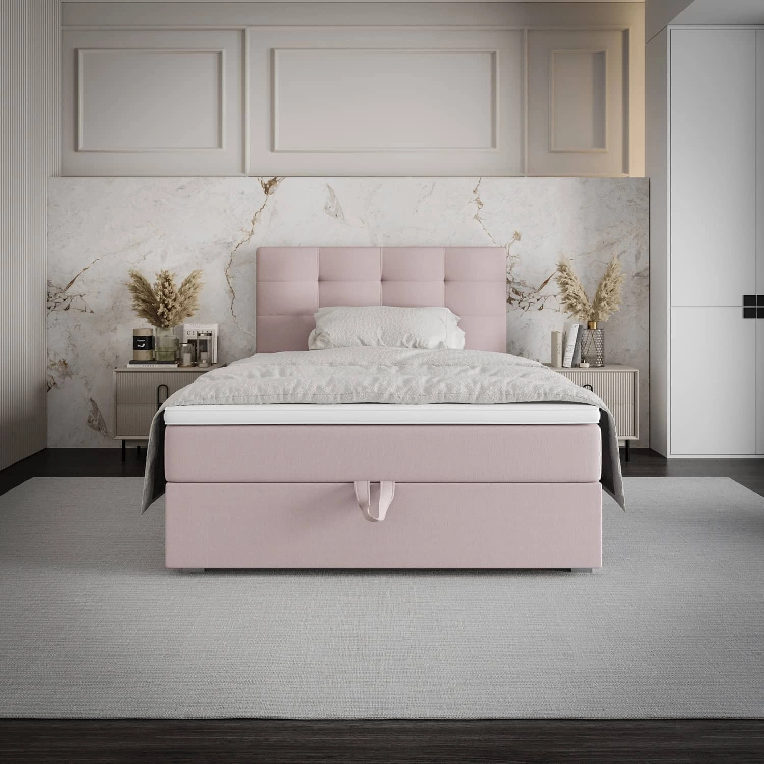 Łóżko kontynentalne Flint 100x200 w kolorze pudrowy róż to idealny wybór do każdej sypialni lub pokoju młodzieżowego.