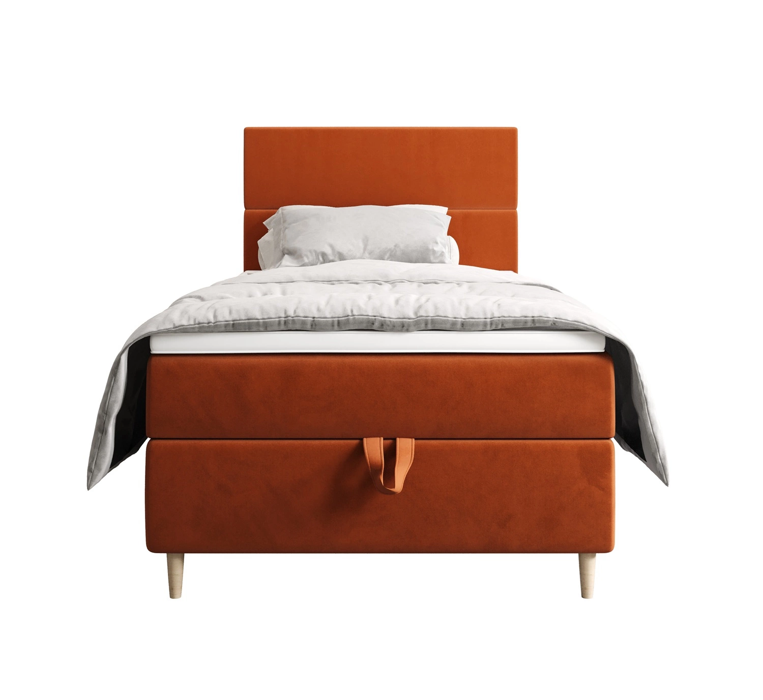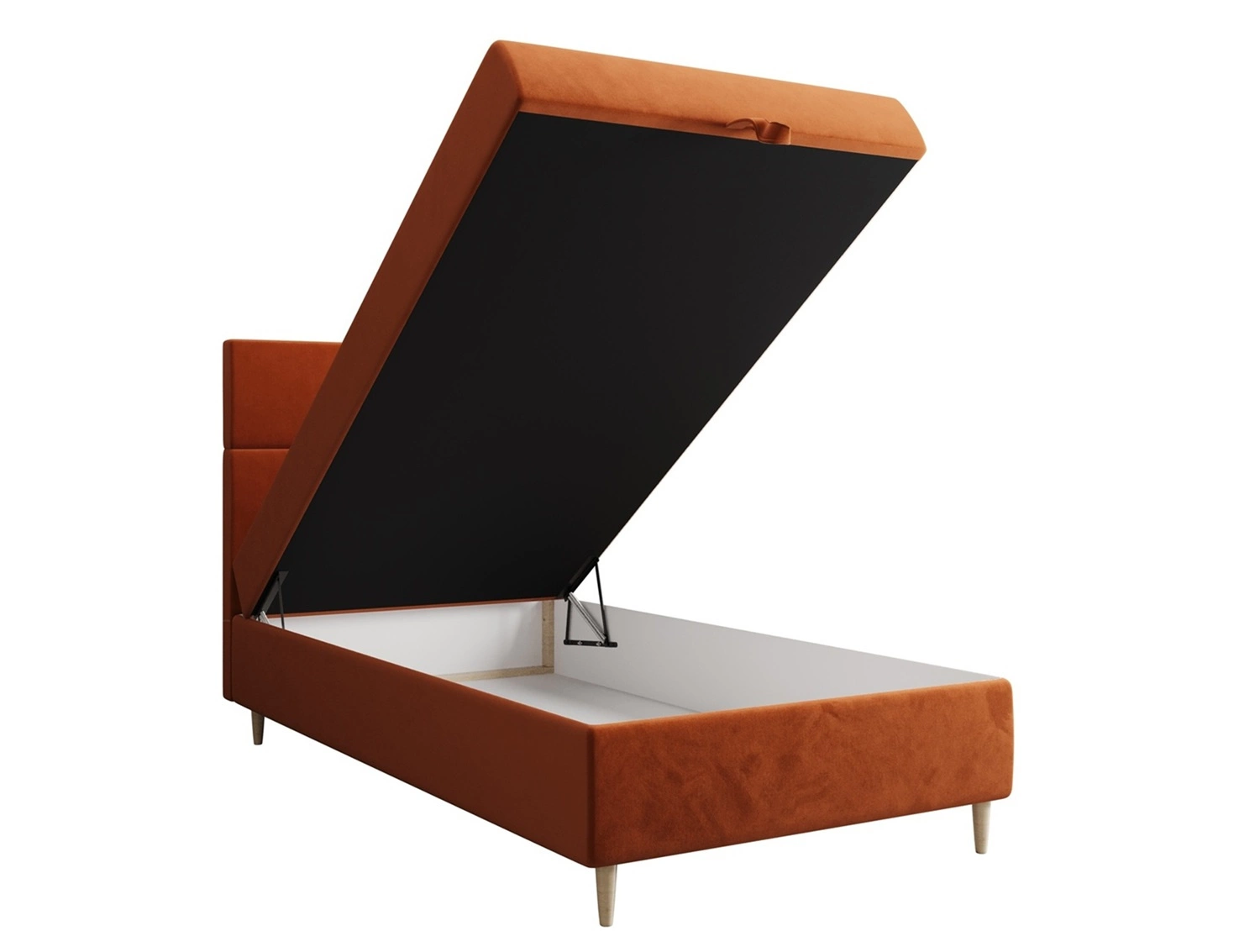 Łóżko kontynentalne Bing 120x200 ceglaste w nowoczesnym skandynawskim stylu z tapicerowanym zagłówkiem łóżko z pojemnikiem