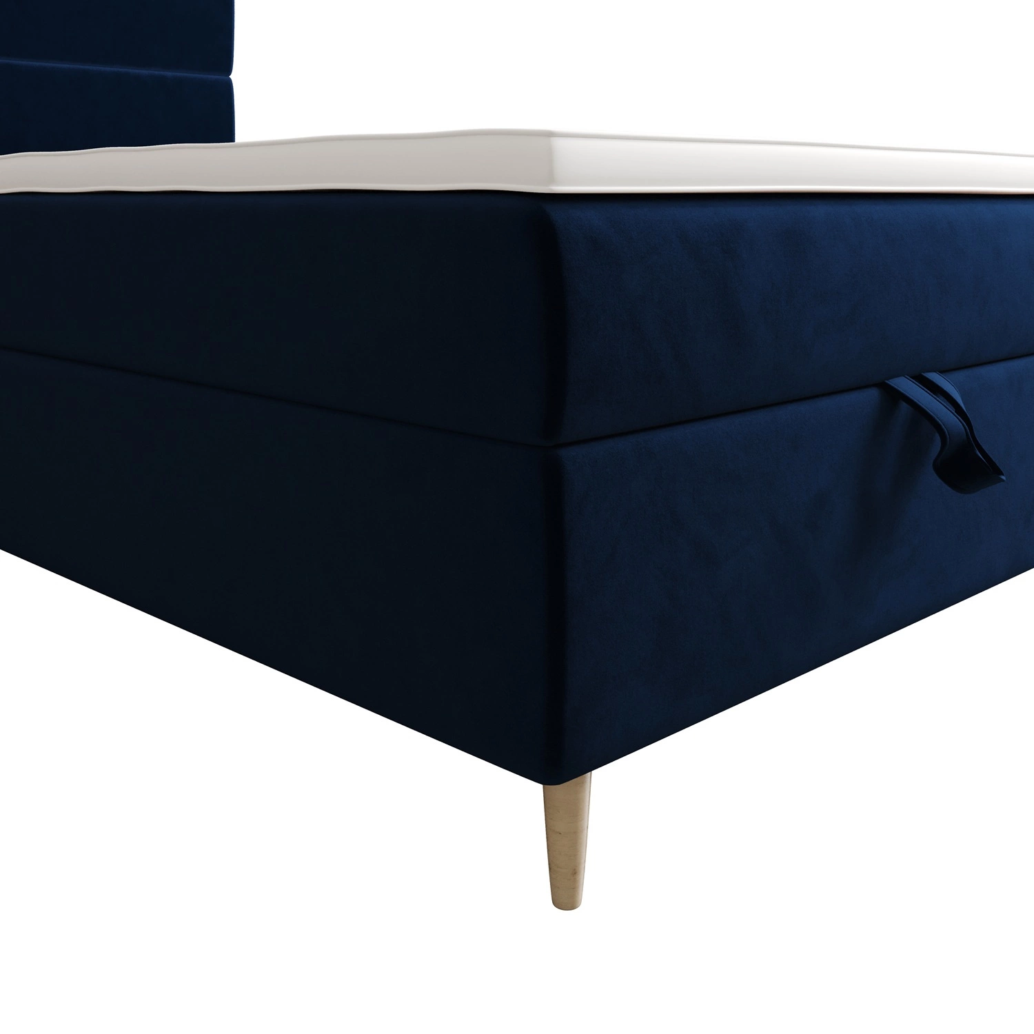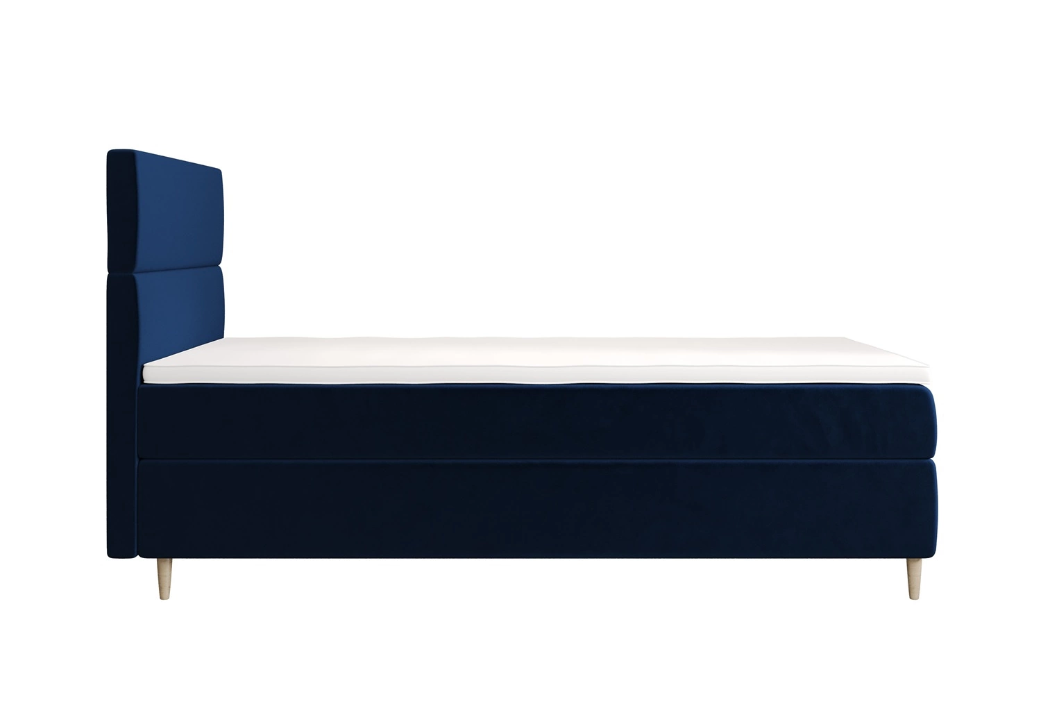 Łóżko kontynentalne Bing 90x200 w kolorze granatowym to idealny wybór do każdej sypialni lub pokoju młodzieżowego.