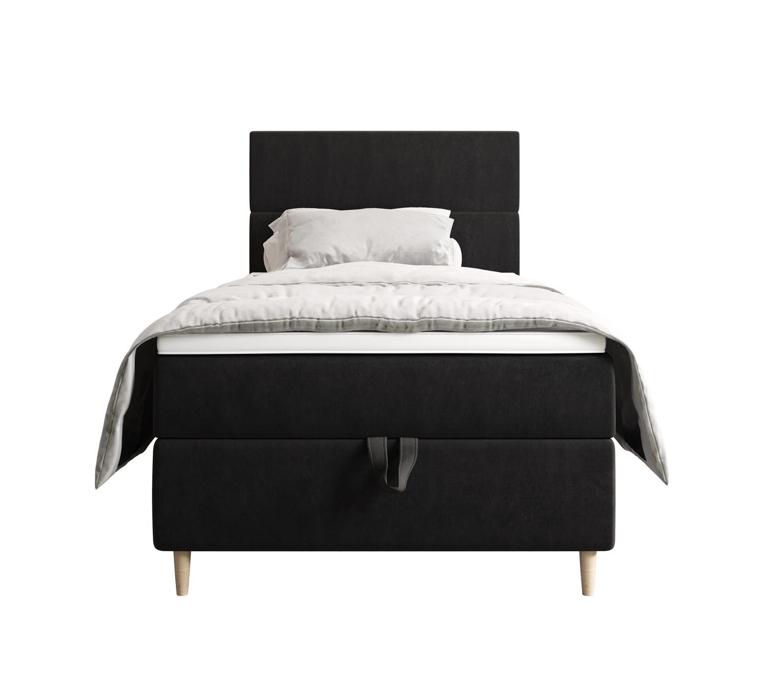 Łóżko kontynentalne Bing 90x200 grafitowe w nowoczesnym skandynawskim stylu z tapicerowanym zagłówkiem łóżko z pojemnikiem