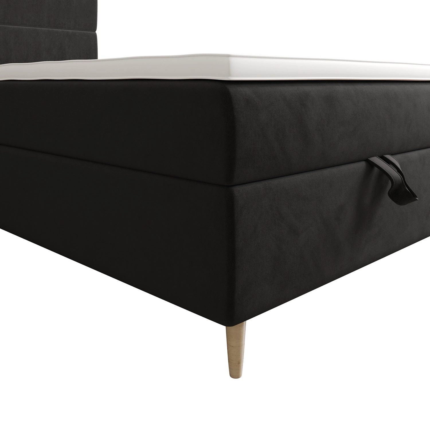 Dla większej funkcjonalności łóżko kontynentalne jest wyposażone w duży pojemnik, który umożliwia wygodne przechowywanie niezbędnych akcesoriów. Dostęp do pojemnika łóżka jest możliwy po podniesieniu materaca z przodu. Niezawodne automaty wspomagające podnoszenie ułatwią tę czynność.