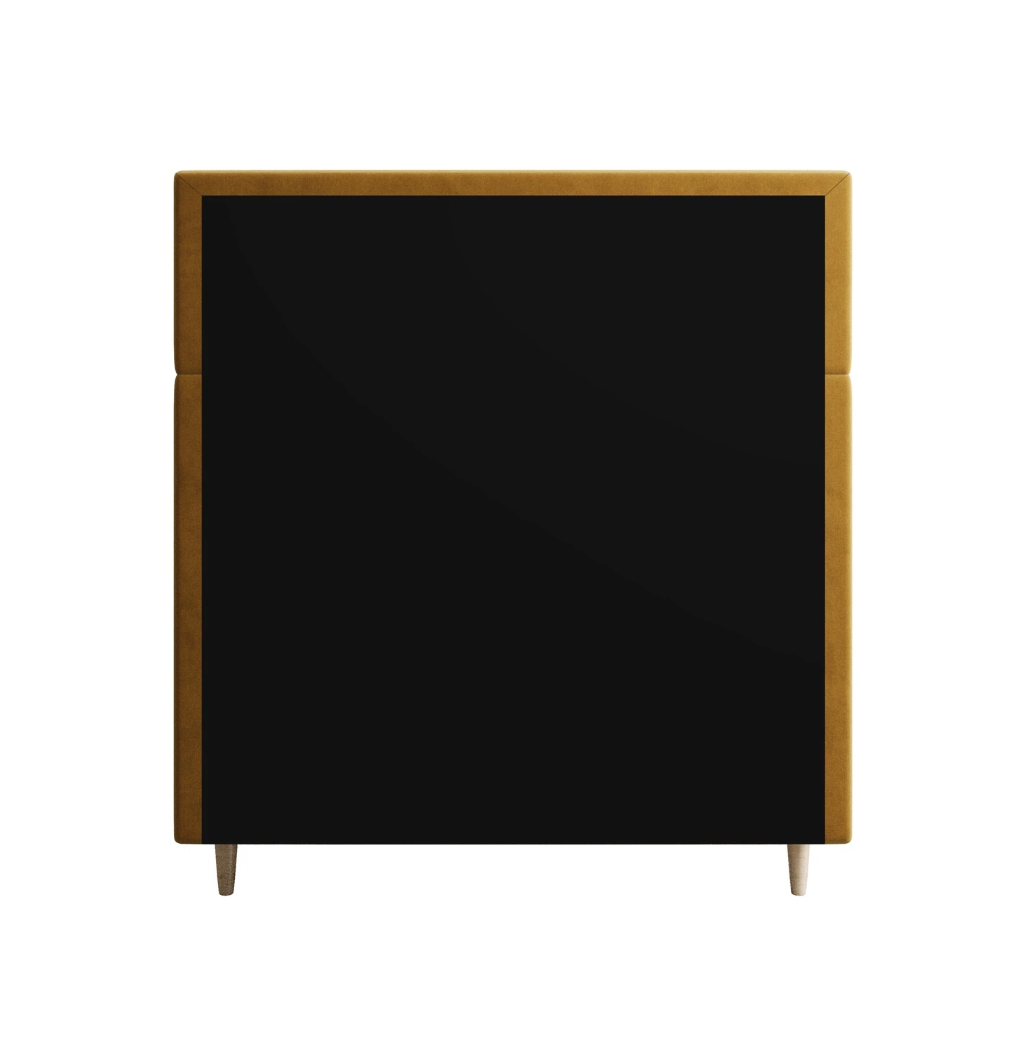 Łóżko kontynentalne Bing 90x200 musztardowe w nowoczesnym skandynawskim stylu z tapicerowanym zagłówkiem łóżko z pojemnikiem
