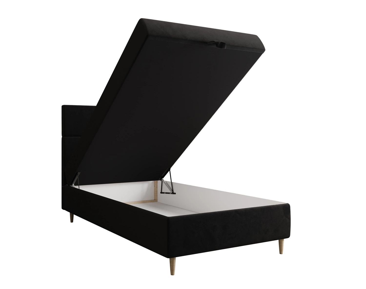 Łóżko kontynentalne Bing 120x200 czarne w nowoczesnym skandynawskim stylu z tapicerowanym zagłówkiem łóżko z pojemnikiem