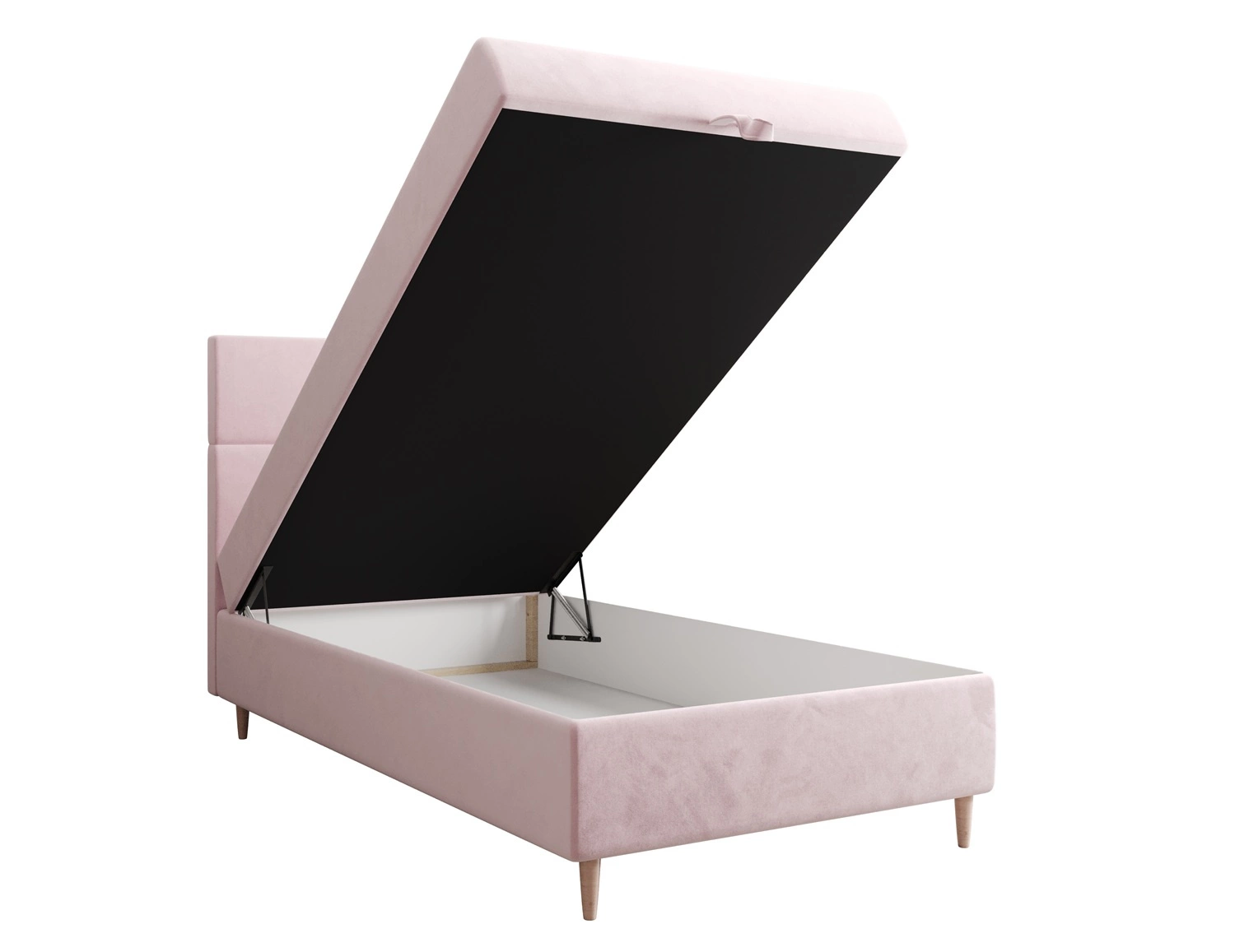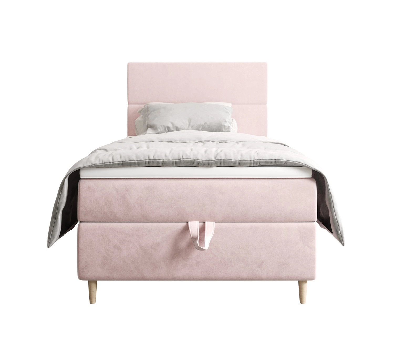 Łóżko kontynentalne Bing 120x200 pudrowy róż w nowoczesnym skandynawskim stylu z tapicerowanym zagłówkiem łóżko z pojemnikiem