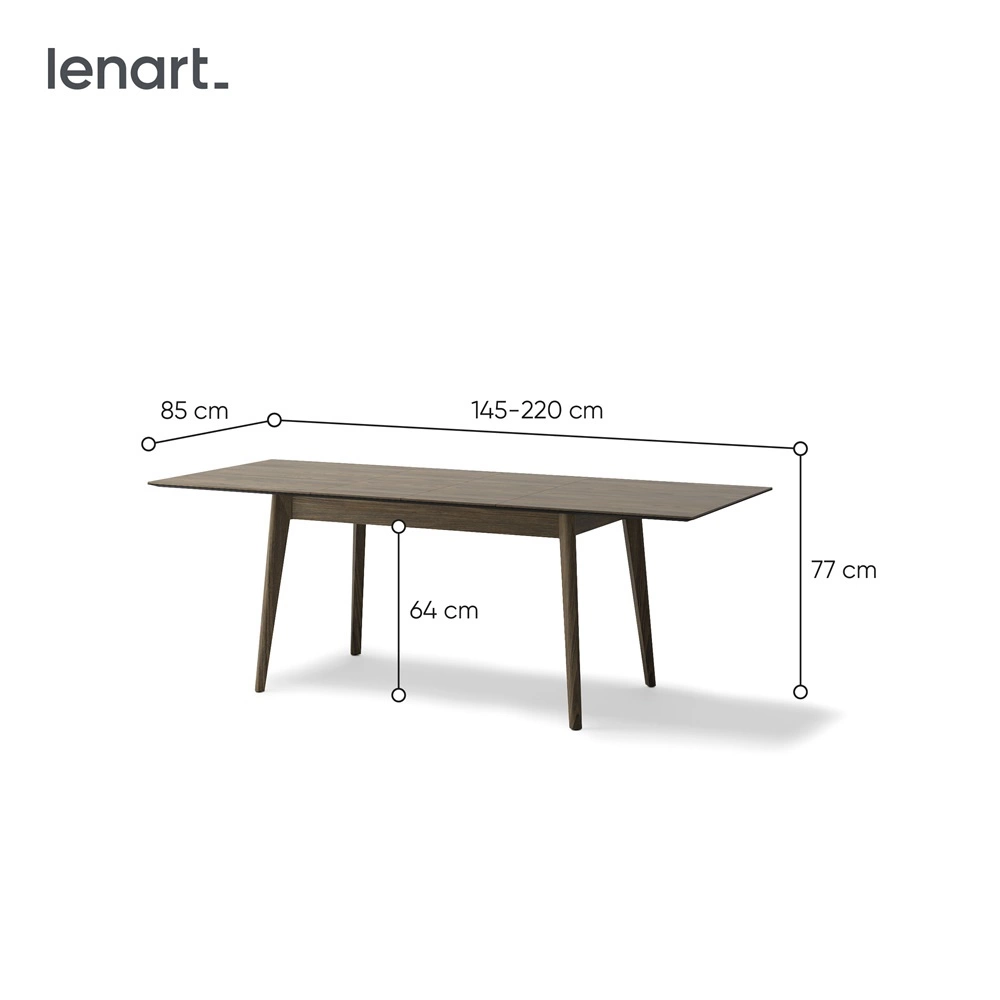 Możliwość wydłużenia blatu o 75 cm ułatwi dopasowanie stołu do pomieszczenia. Stół rozkładany do jadalni to mebel, który został wykonany z najwyższej jakości materiałów, co zapewnia jego trwałość i stabilność. Dzięki solidnej konstrukcji nawet przy maksymalnym rozłożeniu stół zachowuje swoją stabilność, co gwarantuje komfort użytkowania. Blat jest odporny na codzienne uszkodzenia, a ciemne drewno doskonale znosi intensywne użytkowanie, co czyni go idealnym rozwiązaniem na lata.