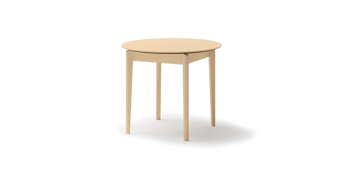 Stół okrągły rozkładany Plot 90 cm dąb jasny funkcjonalny stół o niewielkich rozmiarach idealnie dopasuje się do mniejszych wnętrz