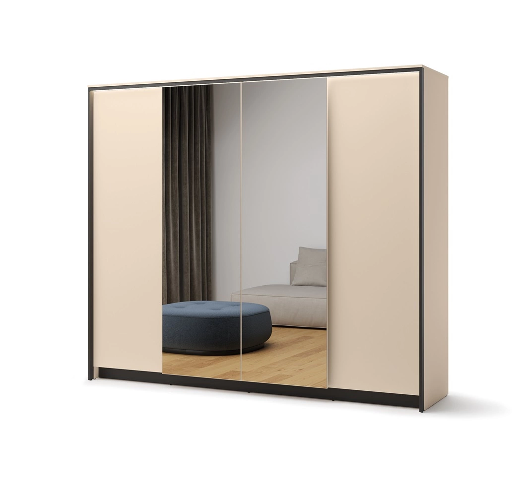 Szafa z lustrem Enna 250 cm beżowy / czarny elegancki design idealna szafa do sypialni lub garderoby klimatyczne oświetlenie LED