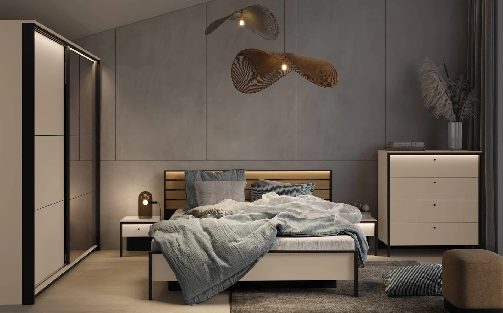 Zestaw mebli do sypialni Enna w kolorze beżowy / czarny Komplet mebli do sypialni