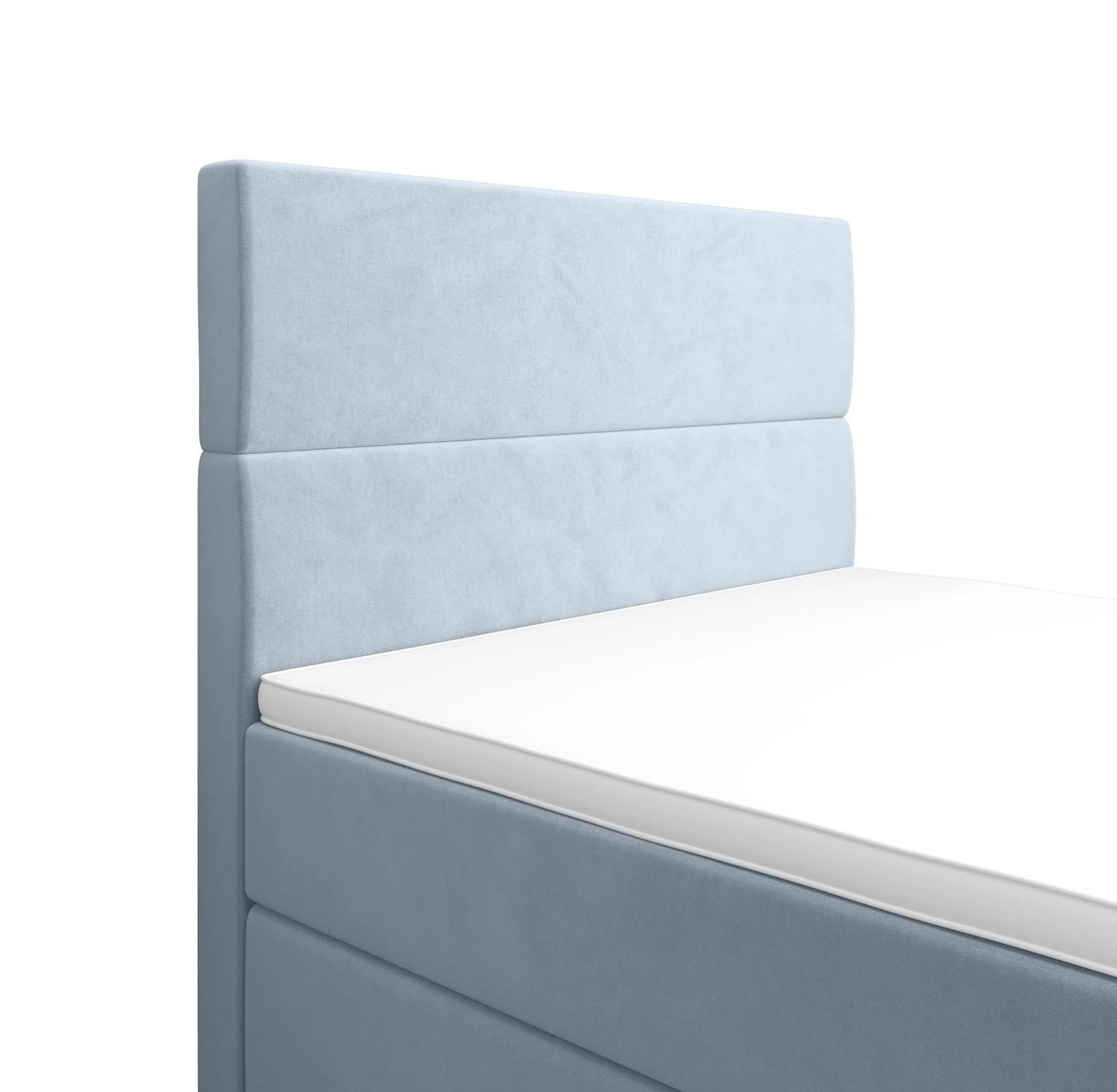 Łóżko kontynentalne Benet 100x200 w kolorze błękitnym to idealny wybór do każdej sypialni lub pokoju młodzieżowego.