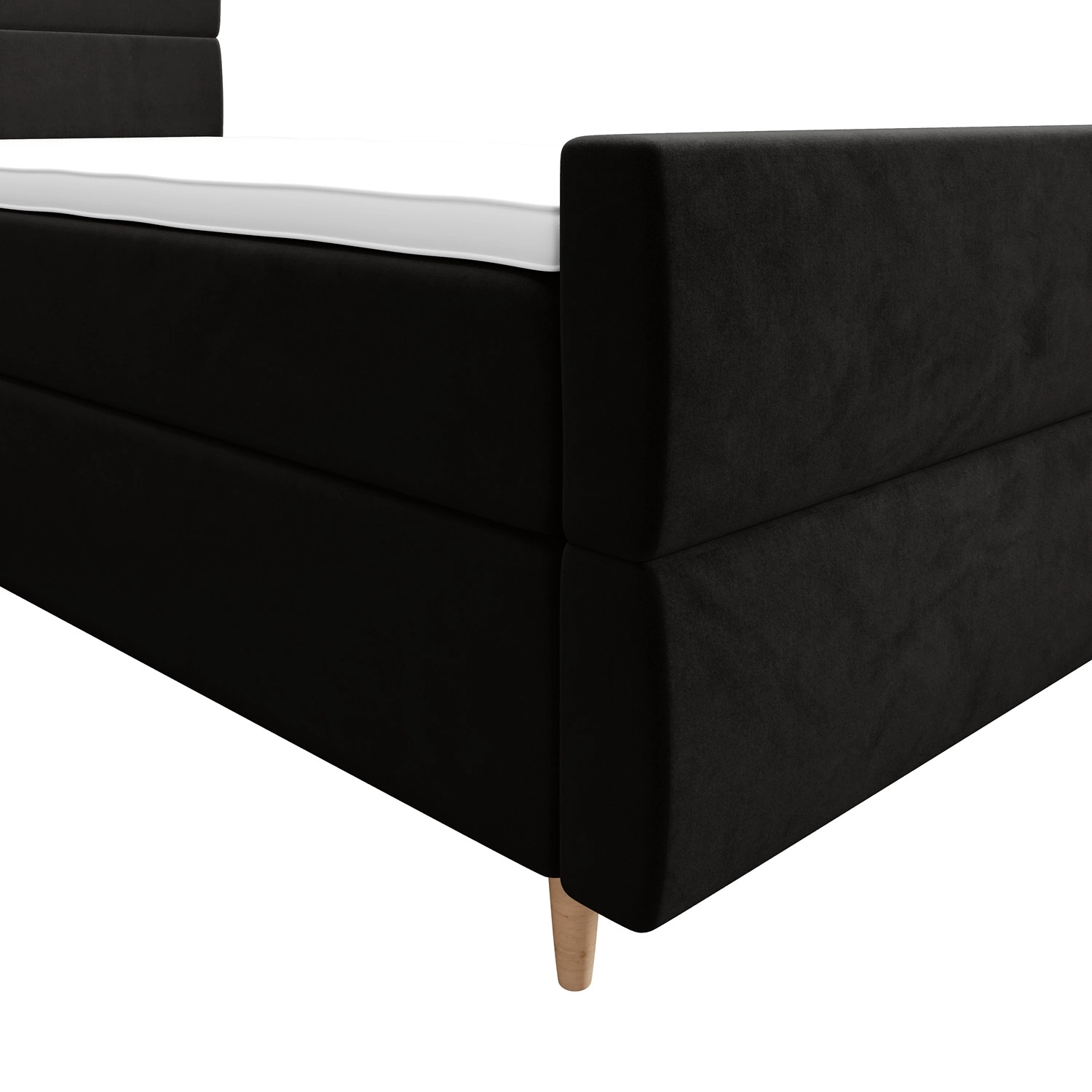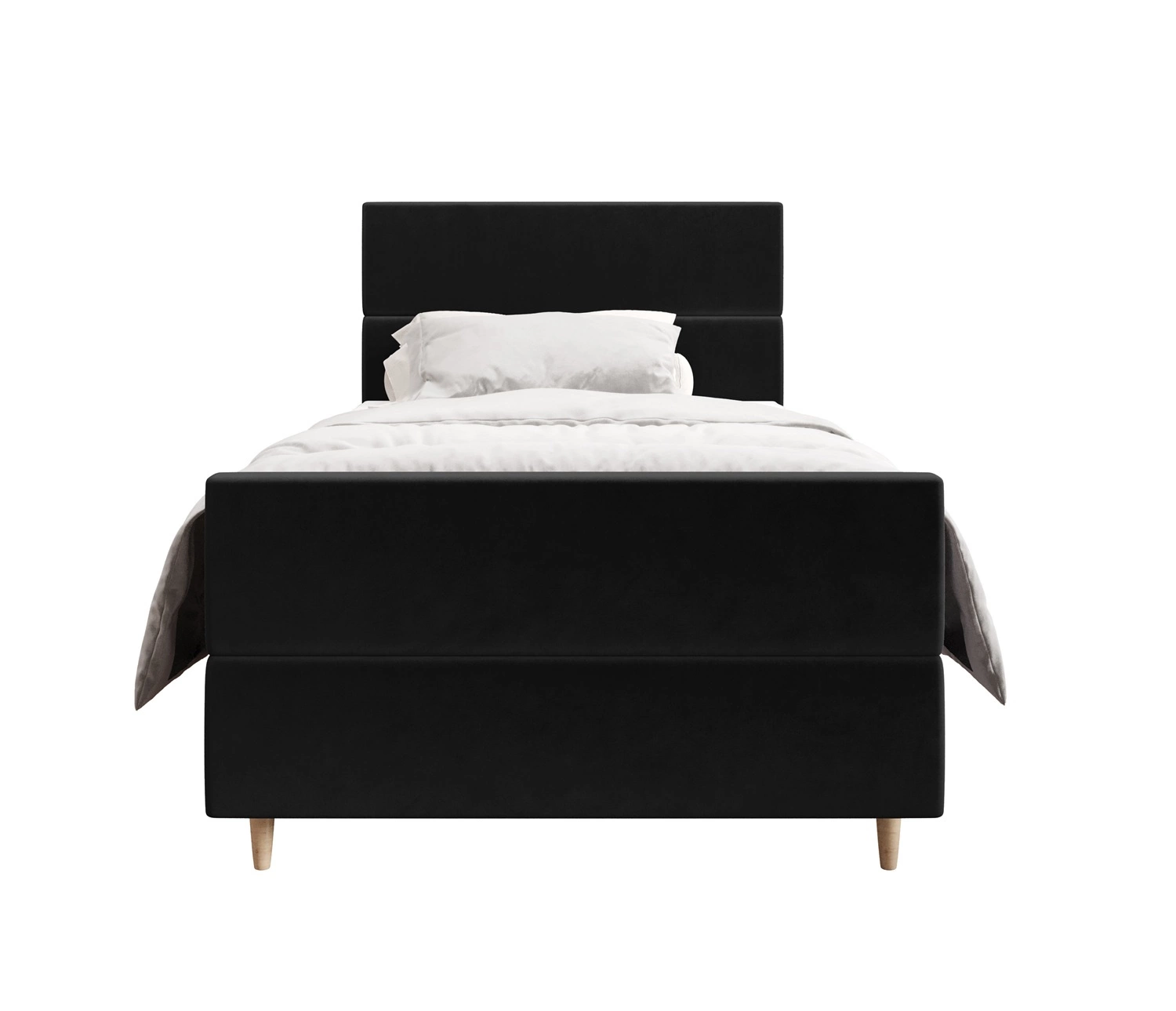 Łóżko kontynentalne Benet 100x200 czarne w nowoczesnym skandynawskim stylu z tapicerowanym zagłówkiem oraz zanóżkiem łóżko z pojemnikiem