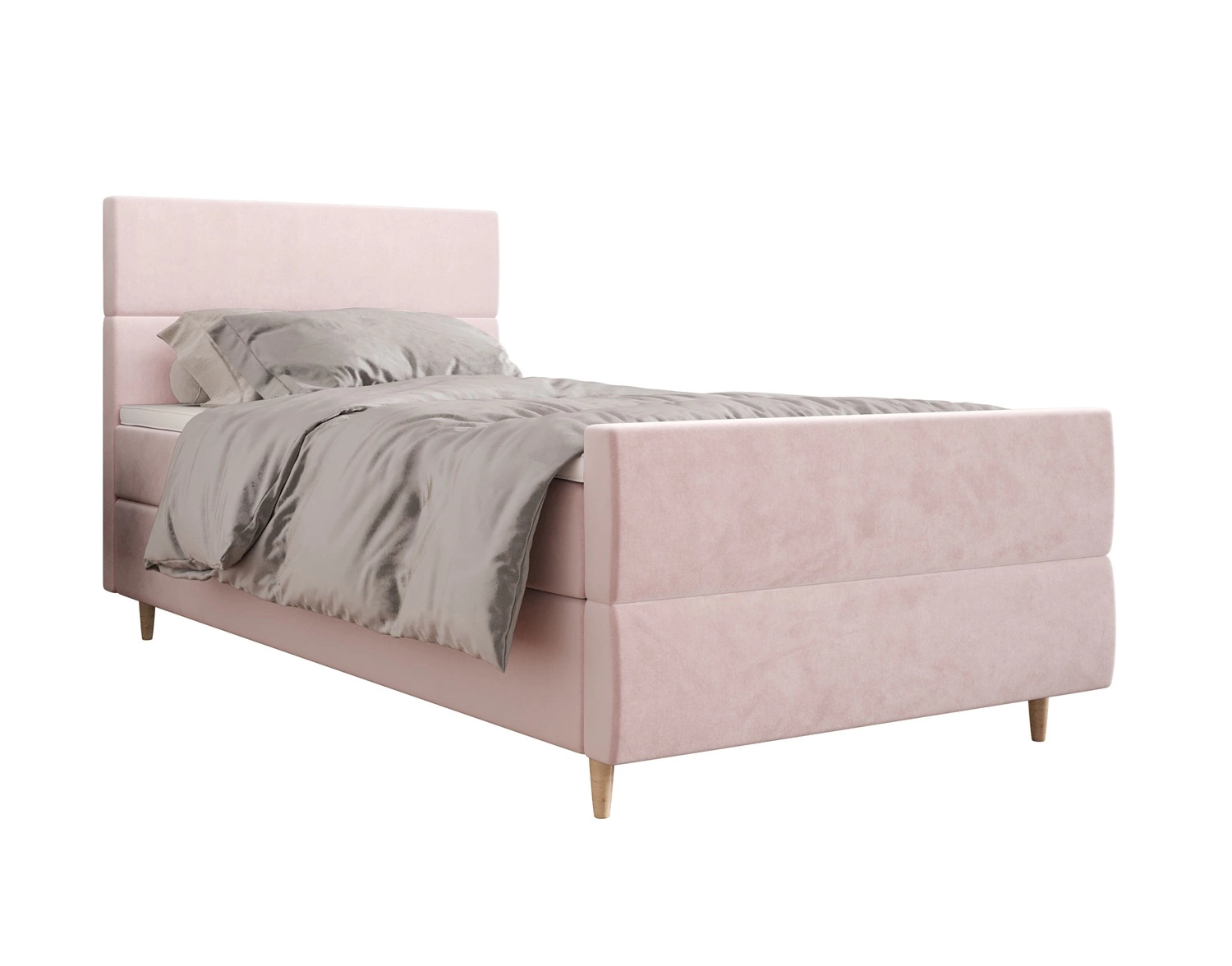 Łóżko kontynentalne Benet 100x200 w kolorze pudrowy róż to idealny wybór do każdej sypialni lub pokoju młodzieżowego.