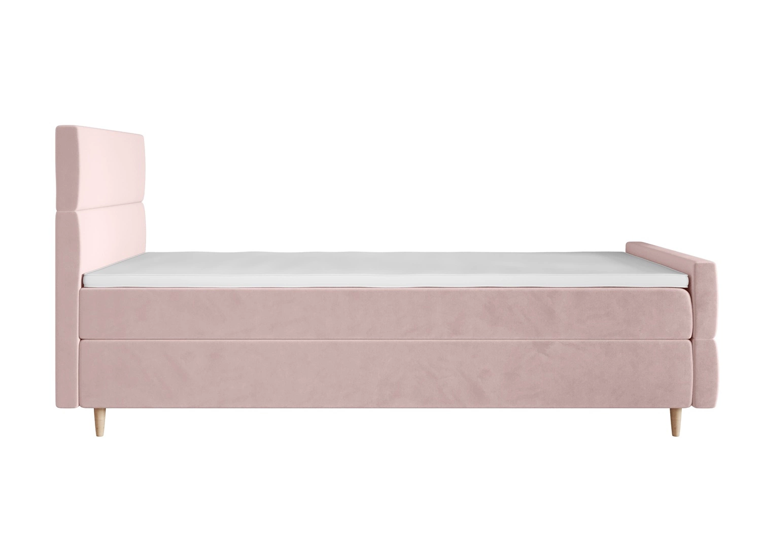 Łóżko kontynentalne Benet 100x200 pudrowy róż w nowoczesnym skandynawskim stylu z tapicerowanym zagłówkiem oraz zanóżkiem łóżko z pojemnikiem
