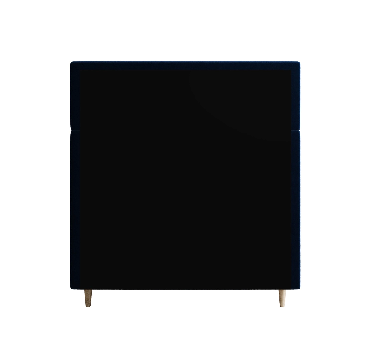 Łóżko kontynentalne Benet 120x200 granatowe w nowoczesnym skandynawskim stylu z tapicerowanym zagłówkiem oraz zanóżkiem łóżko z pojemnikiem