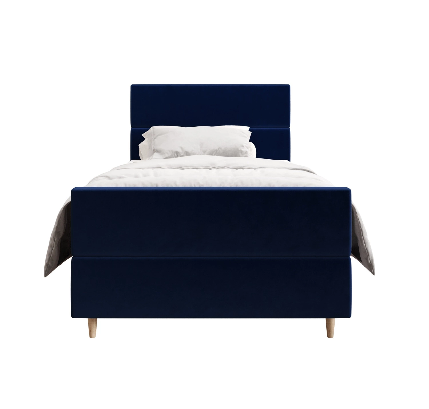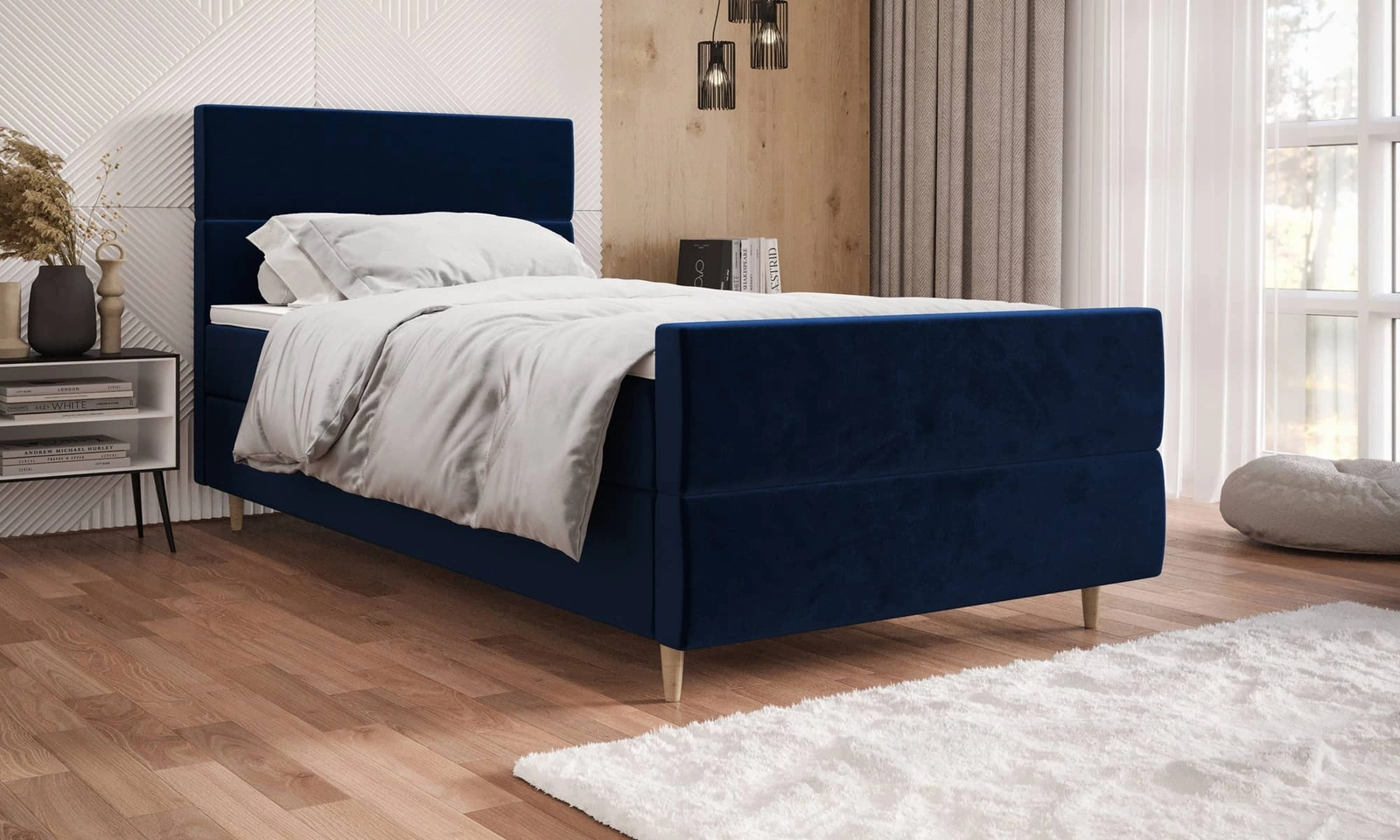 Łóżko kontynentalne Benet 120x200 w kolorze granatowym to idealny wybór do każdej sypialni lub pokoju młodzieżowego.