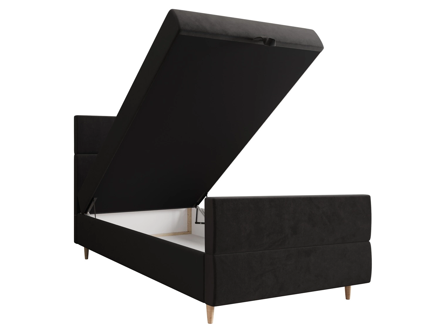 Dla większej funkcjonalności łóżko kontynentalne jest wyposażone w duży pojemnik, który umożliwia wygodne przechowywanie niezbędnych akcesoriów. Dostęp do pojemnika łóżka jest możliwy po podniesieniu materaca z przodu. Niezawodne automaty wspomagające podnoszenie ułatwią tę czynność.