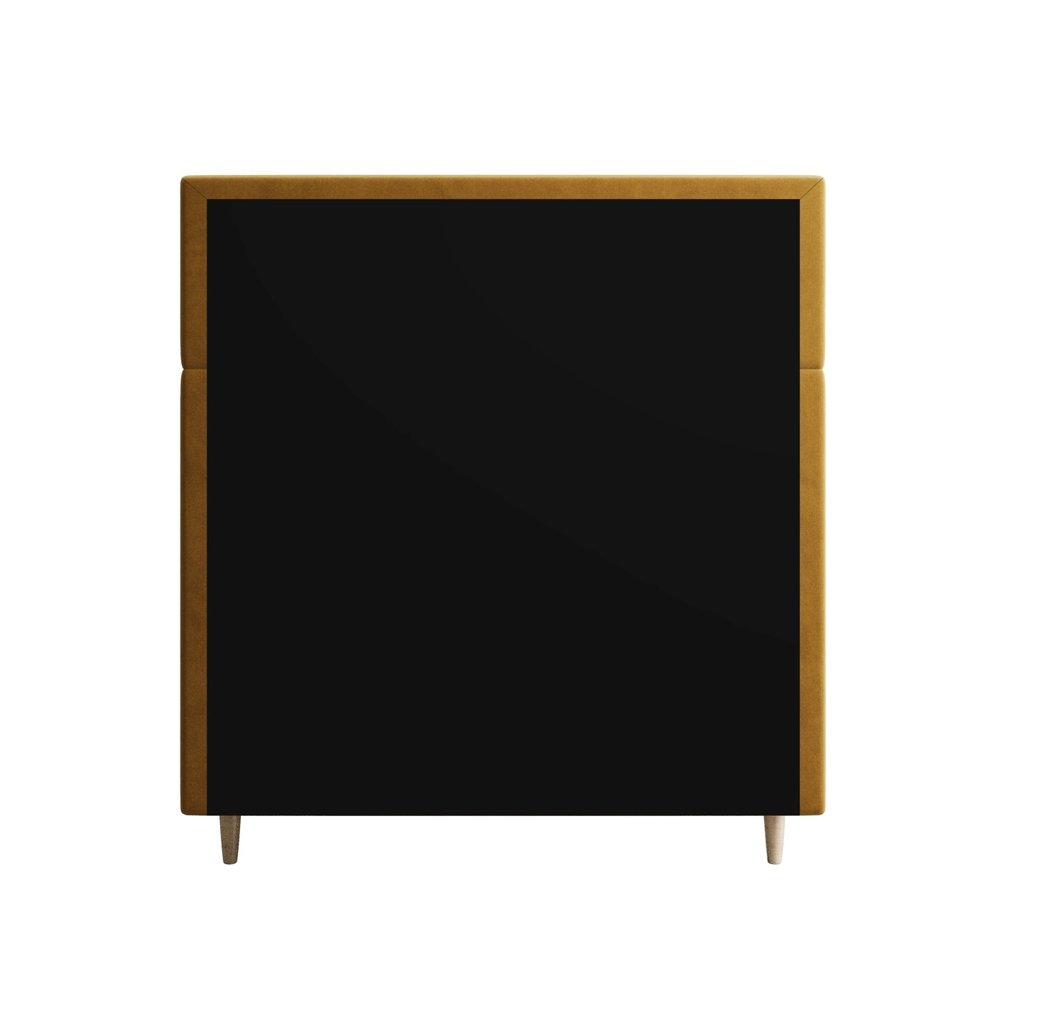 Łóżko kontynentalne Benet 120x200 musztardowe w nowoczesnym skandynawskim stylu z tapicerowanym zagłówkiem oraz zanóżkiem łóżko z pojemnikiem