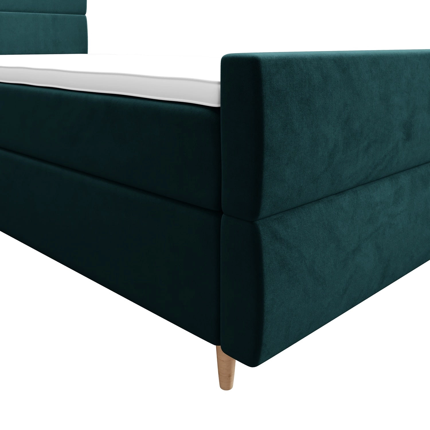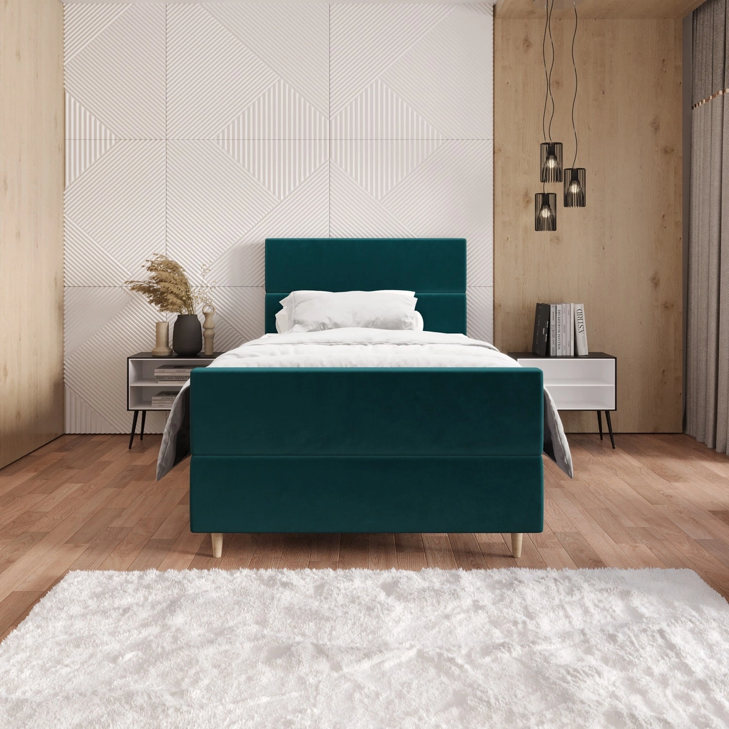 Łóżko kontynentalne Benet 120x200 w kolorze turkusowym to idealny wybór do każdej sypialni lub pokoju młodzieżowego.
