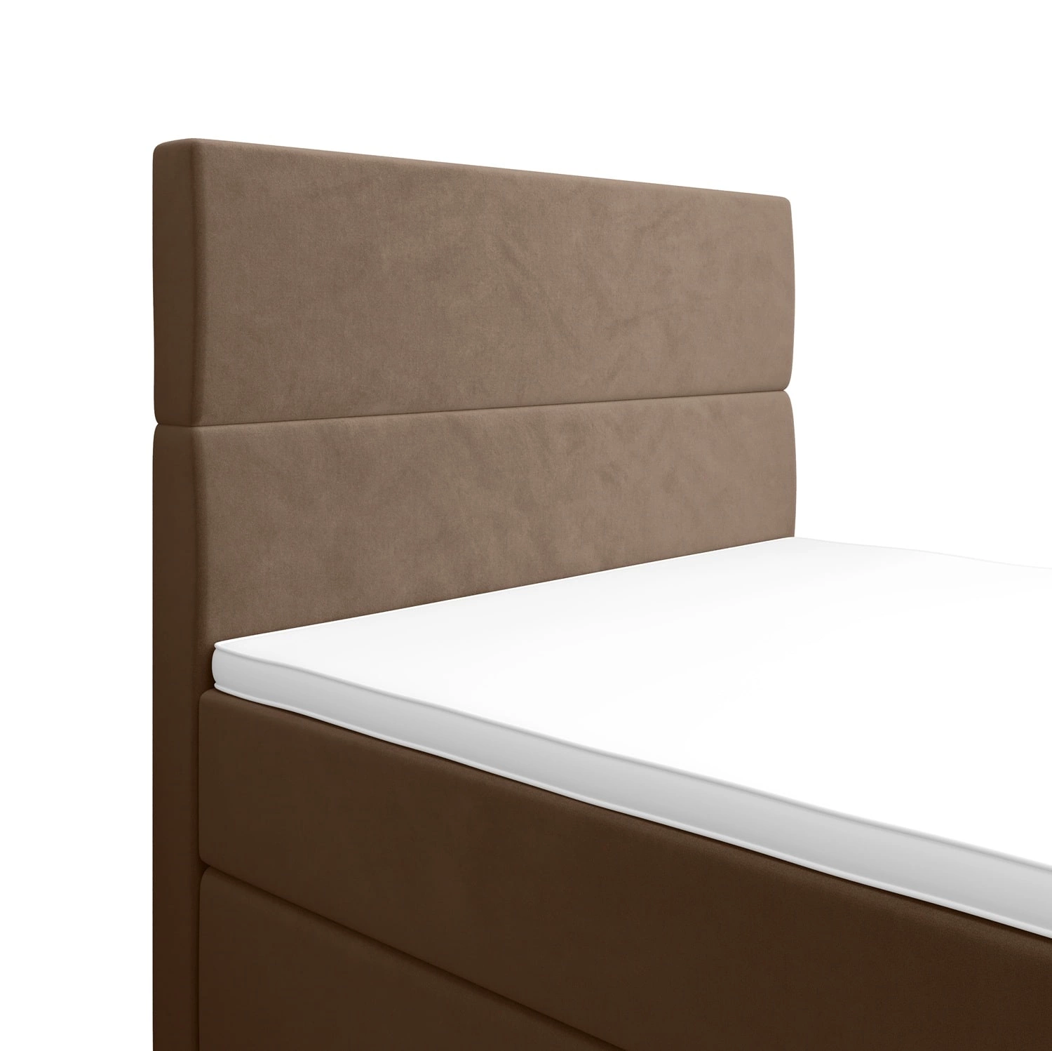 Łóżko kontynentalne Benet 120x200 w kolorze jasny brąz to idealny wybór do każdej sypialni lub pokoju młodzieżowego.