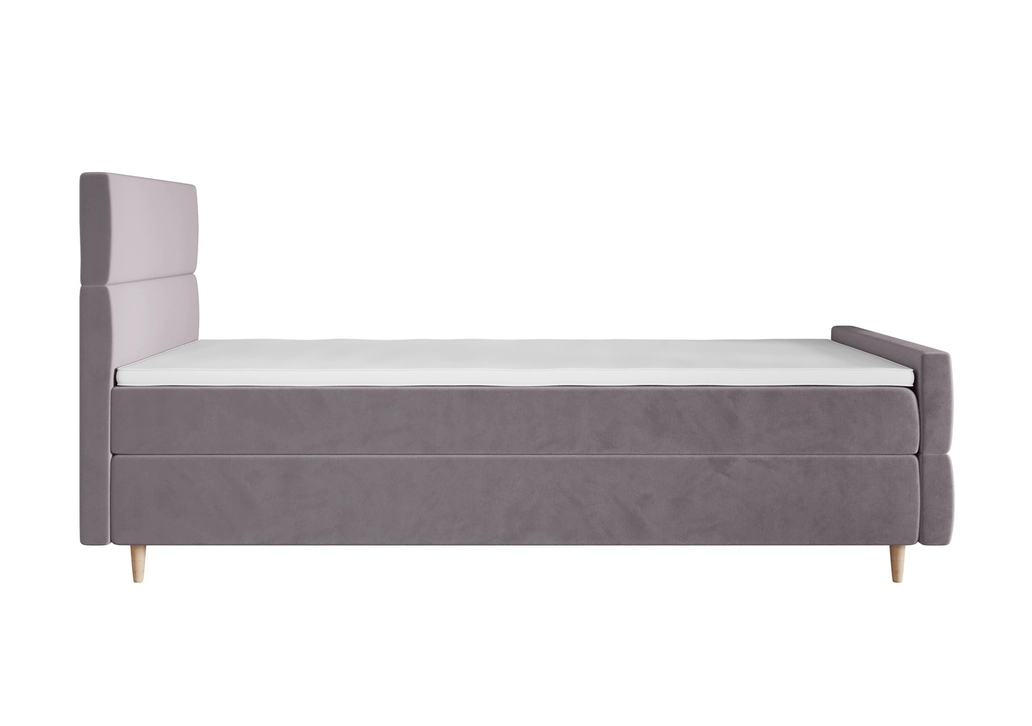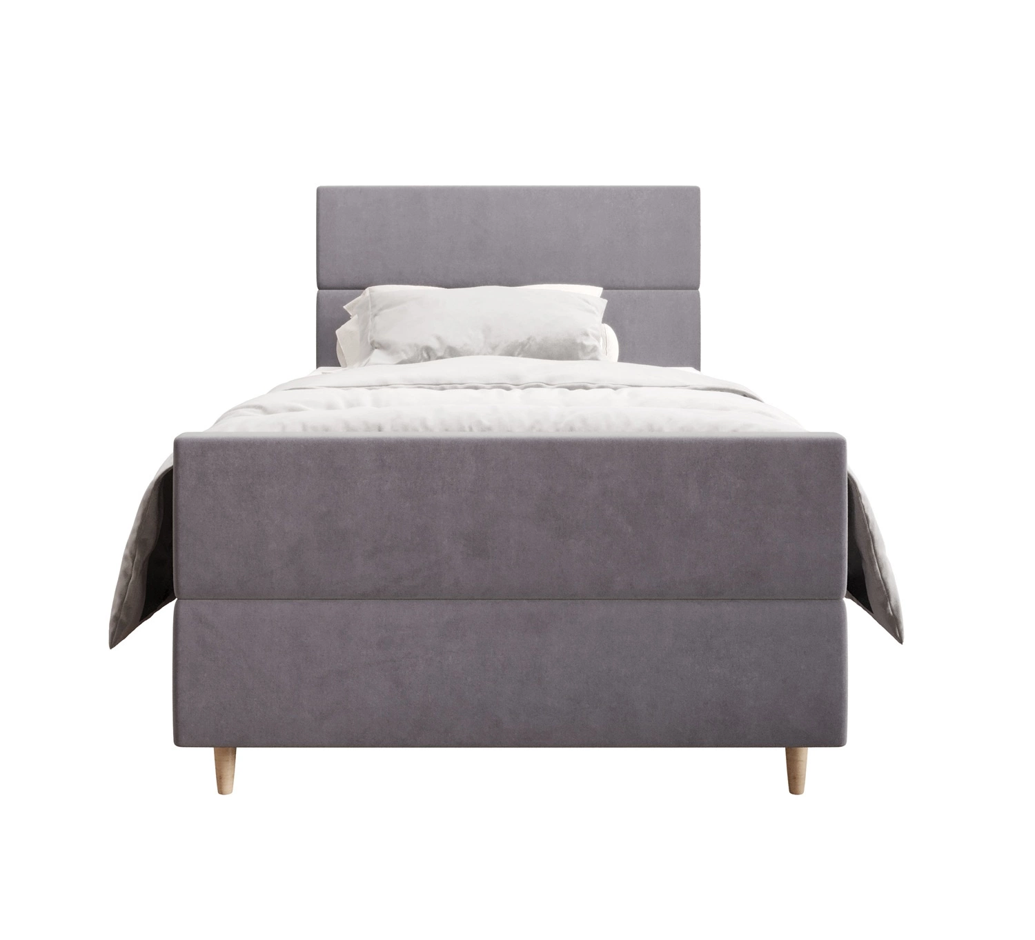 Łóżko kontynentalne Benet 120x200 jasny szary w nowoczesnym skandynawskim stylu z tapicerowanym zagłówkiem oraz zanóżkiem łóżko z pojemnikiem