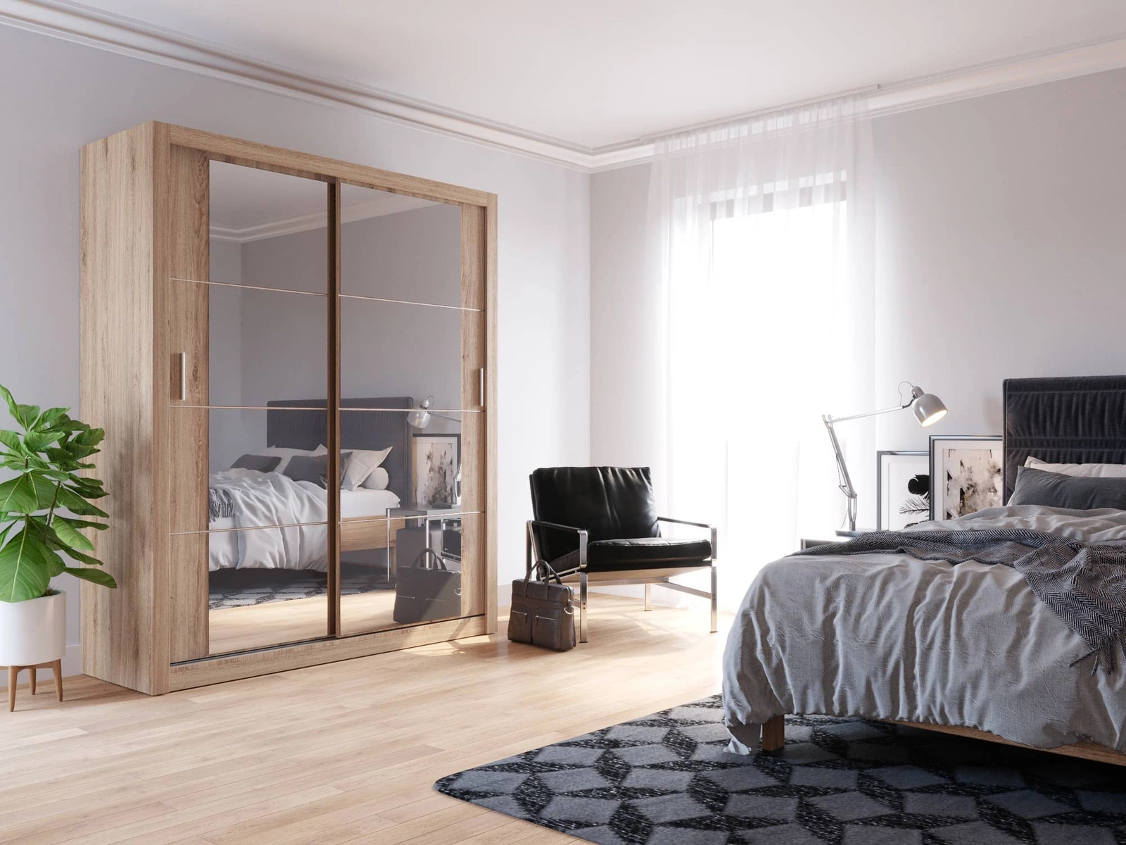 Szafa z lustrem do sypialni Arti w kolorze dąb shetland Szafa do garderoby Szafa przesuwna z lustrem
