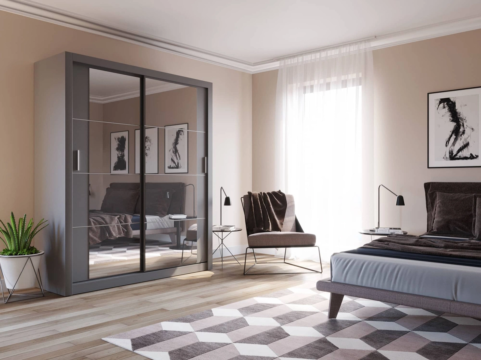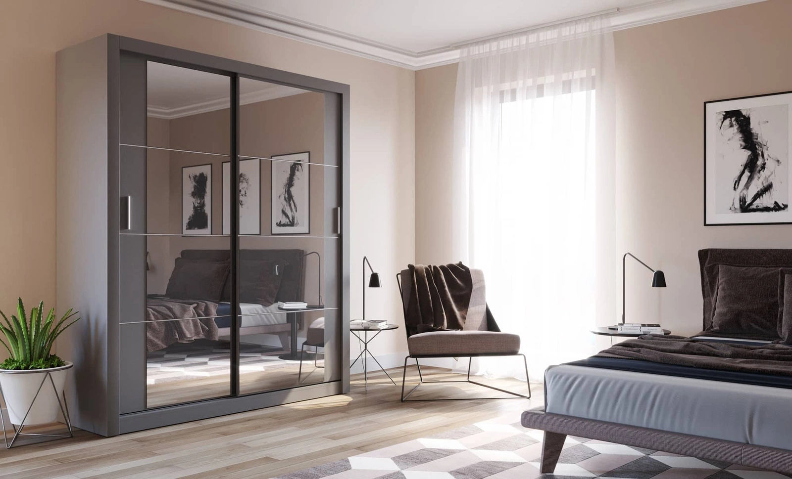 Szafa przesuwna z lustrem Arti 180 cm w kolorze szarym to niezbędny element wyposażenia, który odnajdzie się w wielu aranżacjach.