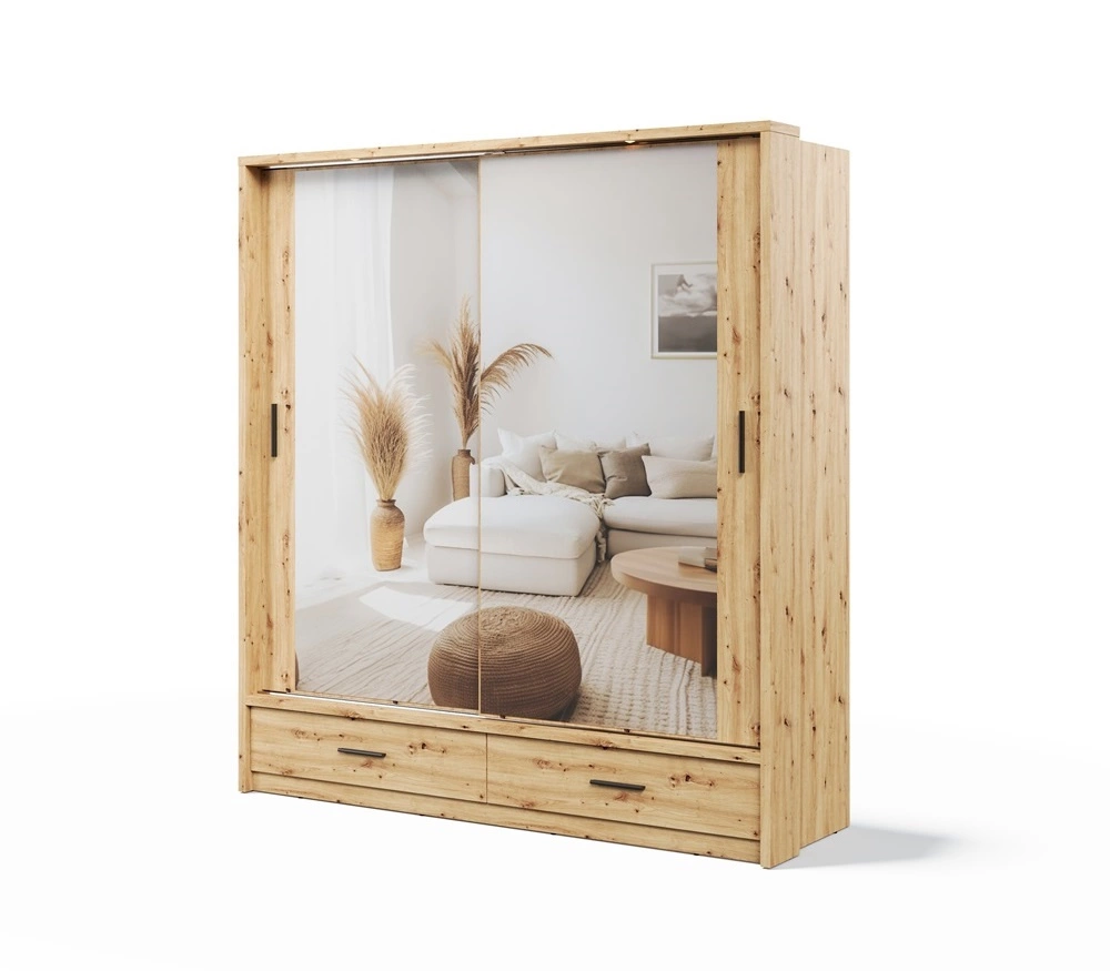 Szafa przesuwna z lustrem Arti 200 cm w kolorze dąb artisan to niezbędny element wyposażenia, który odnajdzie się w wielu aranżacjach.