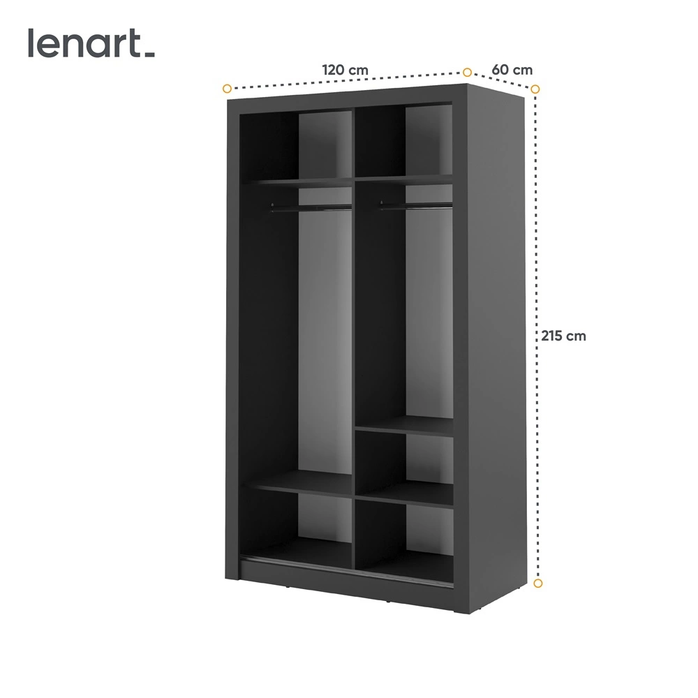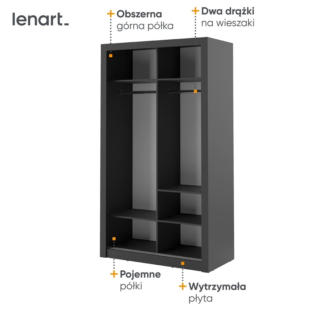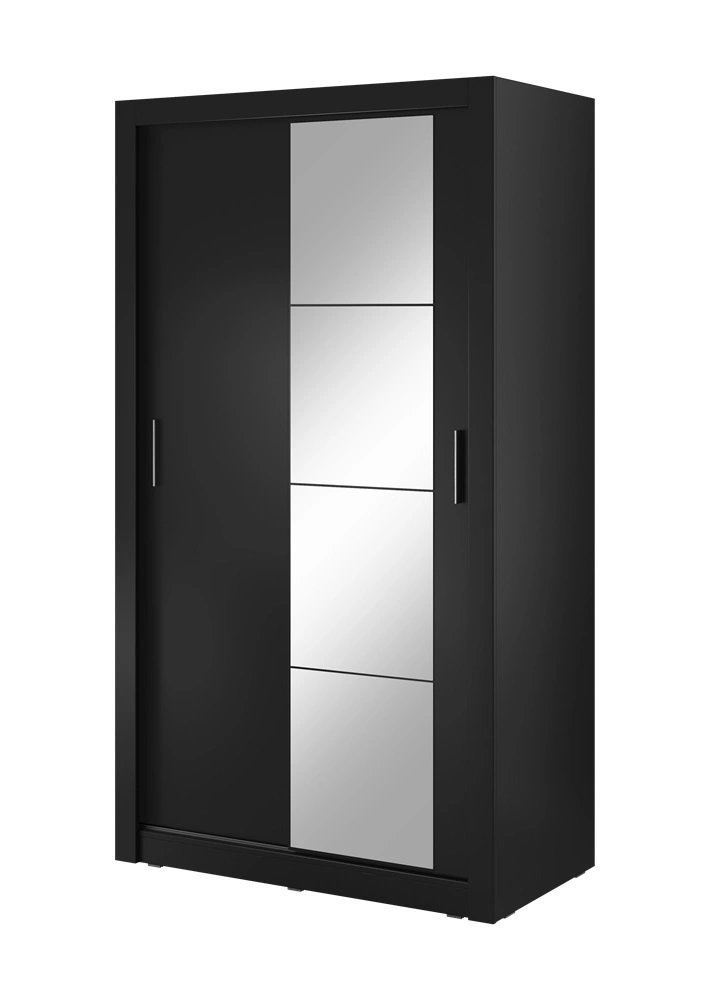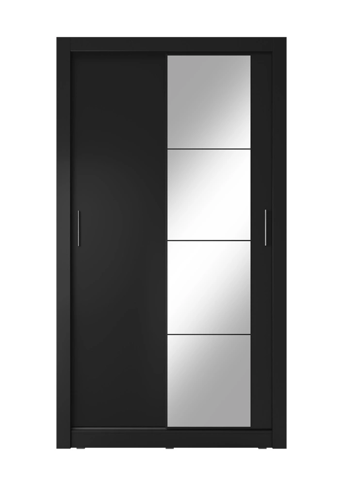 Szafa przesuwna z lustrem Arti 120 cm czarna funkcjonalna szafa do sypialni lub pokoju młodzieżowego drzwi szafy wykończone lustrami