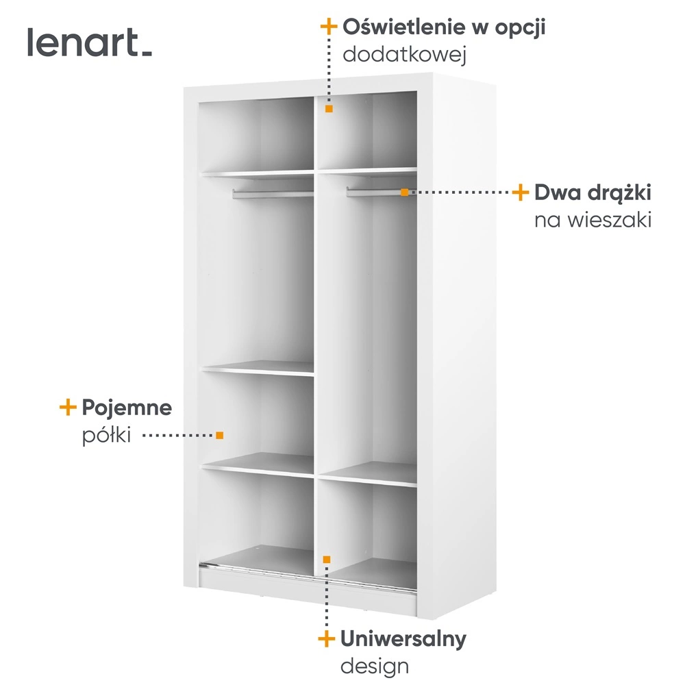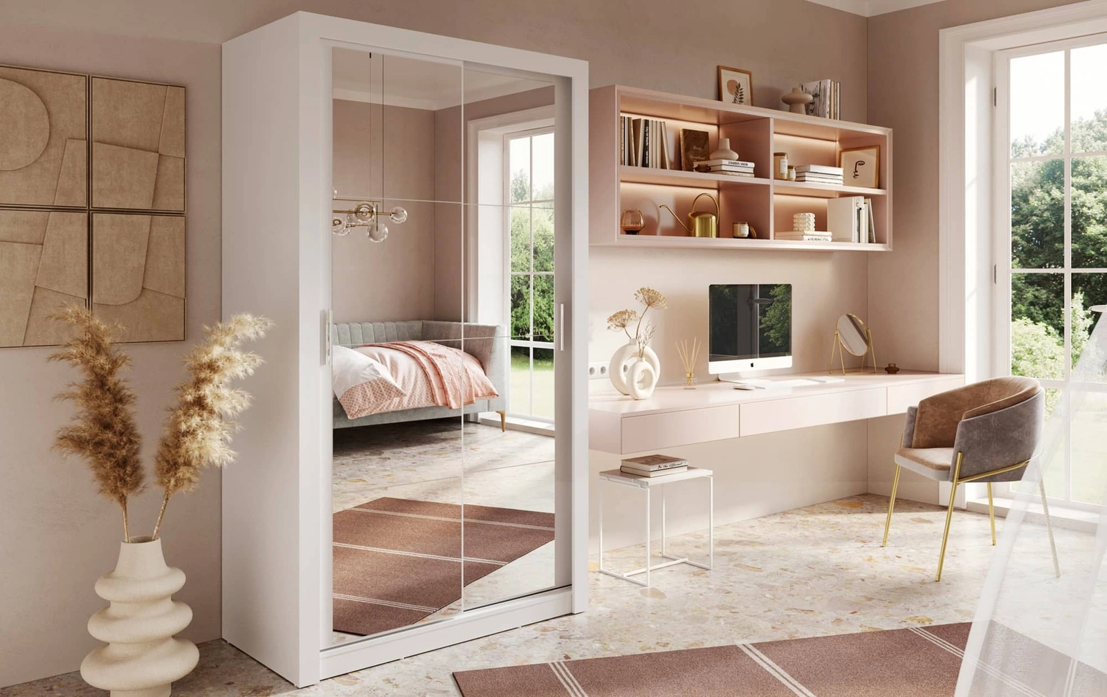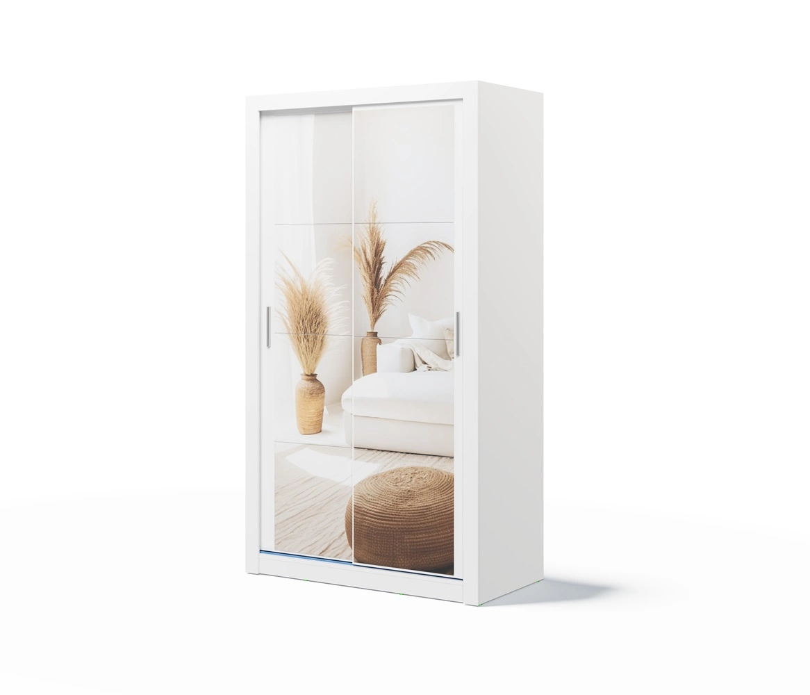 Szafa przesuwna z lustrem Arti 120 cm w kolorze białym to niezbędny element wyposażenia, który odnajdzie się w wielu aranżacjach.