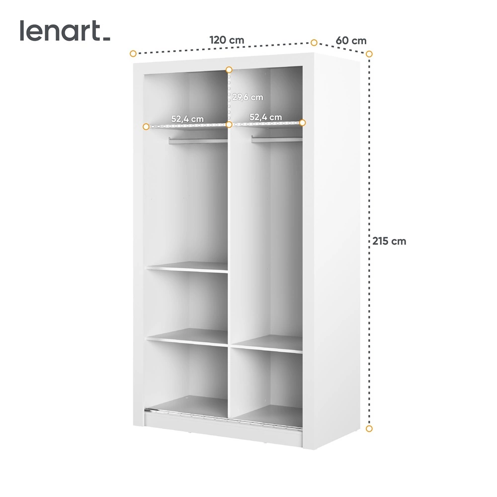 Szafa przesuwna z lustrem Arti 120 cm biała pojemna szafa do przedpokoju drzwi szafy wykończone lustrami w ciekawej konfiguracji