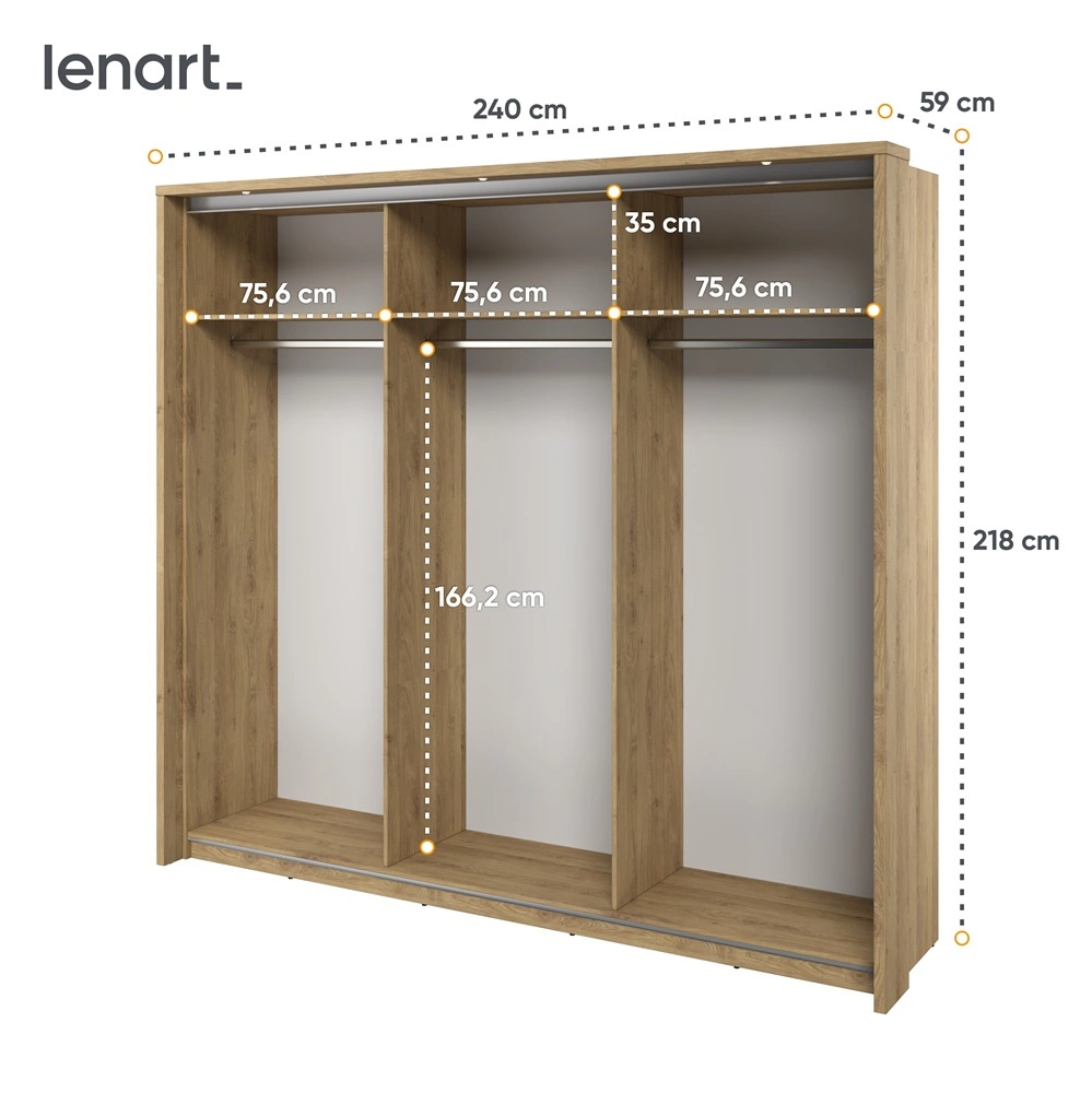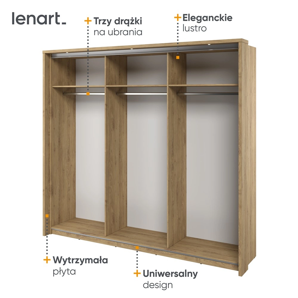 Szafa przesuwna z lustrem Arti 240 cm dąb shetland funkcjonalna i stylowa szafa do sypialni oświetlenie LED doda niepowtarzalności