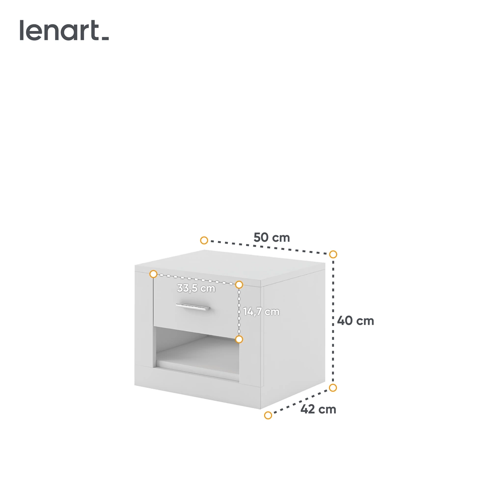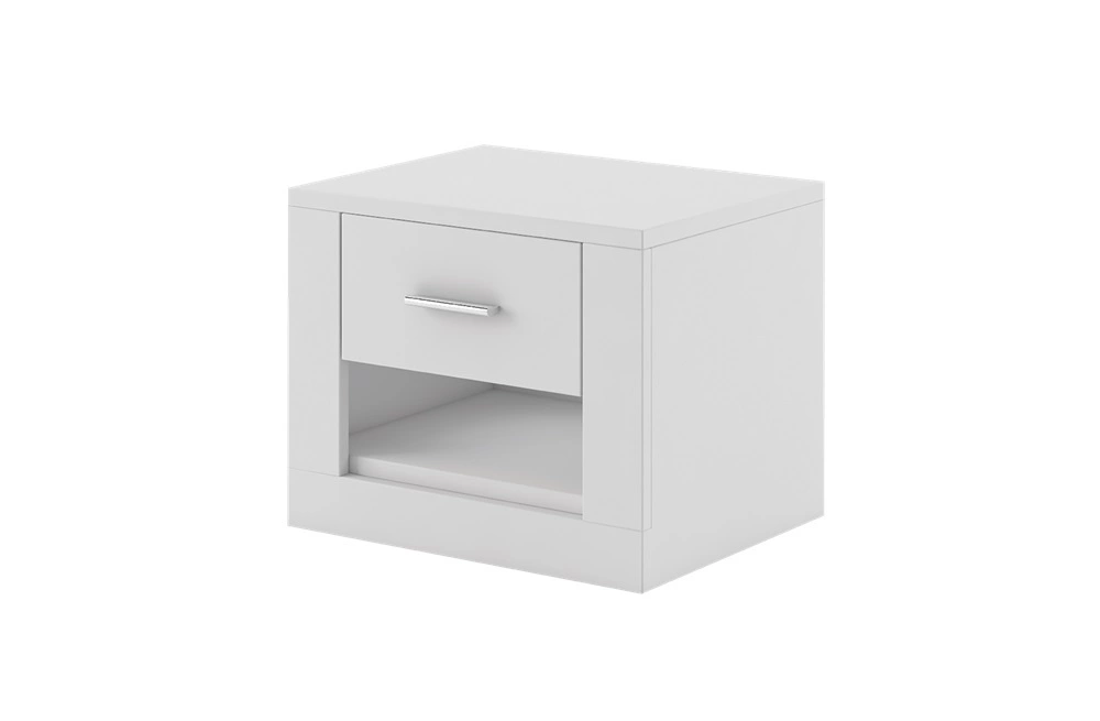 Szafka nocna jest skonstruowana z 1 szuflady. Szafki nocne gwarantują komfortowe i bezproblemowe korzystanie oraz trwałość całego mebla przez wiele lat użytkowania. Ponadczasowa biel nada pomieszczeniu lekkości i przytulnego klimatu, dzięki czemu szafki nocne do sypialni z kolekcji Arti sprawdzą się także jako szafka nocna loft lub szafka nocna dla nastolatka.