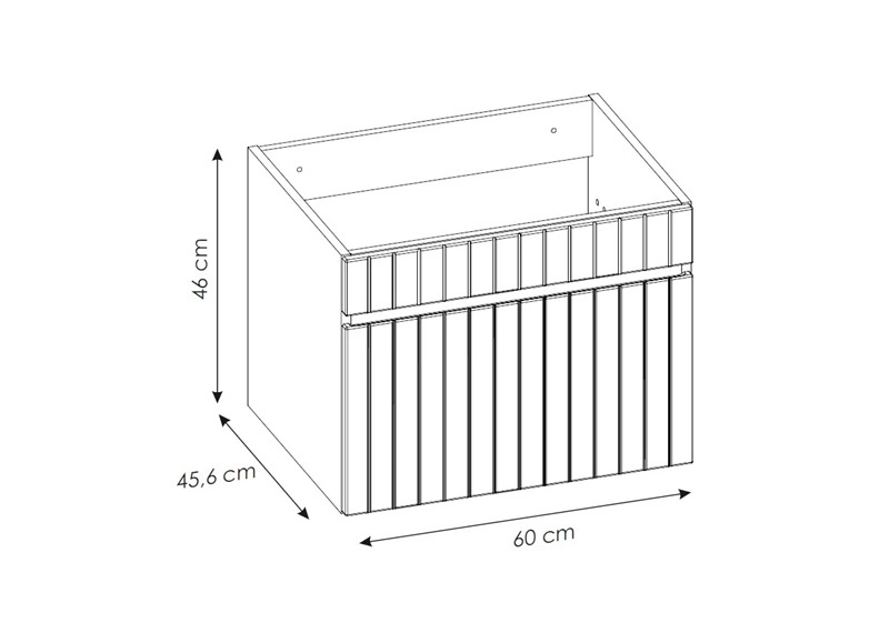 Korpus szafki jest wykonany z wysokiej jakości płyty laminowanej o grubości 16 mm. Zaletą tego rodzaju płyty jest wysoka odporność na wpływ czynników, często występujących w łazience, takich jak para wodna, wysoka temperatura czy rozlane ciecze. Ryflowane fronty szafki pod umywalkę zostały wykonane z płyty MDF. Konstrukcja szafki umożliwia użycie umywalki wpuszczanej lub zabudowanie jej dedykowanym blatem do umywalki nablatowej.