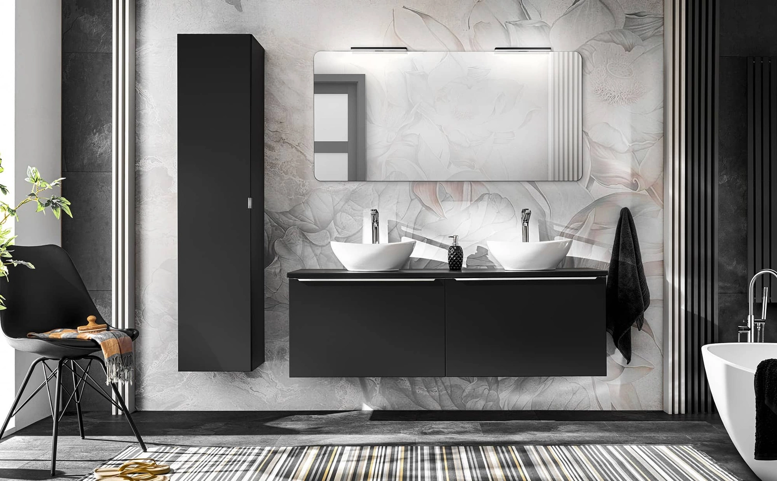 Szafka pod umywalkę Santa Fe to niezwykle trwały mebel łazienkowy, który łączy wysoką elegancję i funkcjonalność. Ponadczasowa czerń połączona z gładką powierzchnią bryły nadaje całości nietuzinkowego charakteru, dzięki czemu wygląd kolekcji sprosta nawet najbardziej wysublimowanym potrzebom wizualnym. Dopełnieniem frontu szafki pod umywalkę są metalowe uchwyty krawędziowe w kolorze chromu, doskonale wpisujące się w obecne trendy. Luksusowy design i odważna kolorystyka z pewnością ożywi każdą łazienkę oraz zachwyci elegancją.